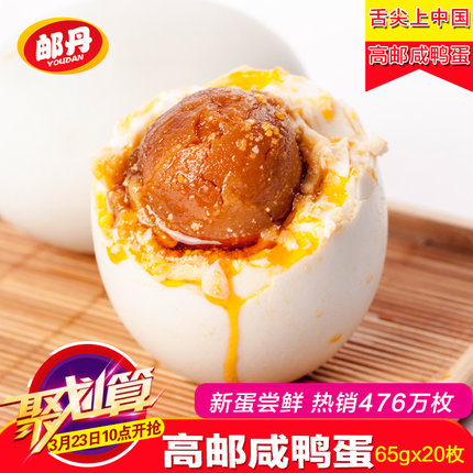 邮丹高邮咸鸭蛋正宗流油咸蛋黄熟红心65g*20枚散装土特产红泥腌制