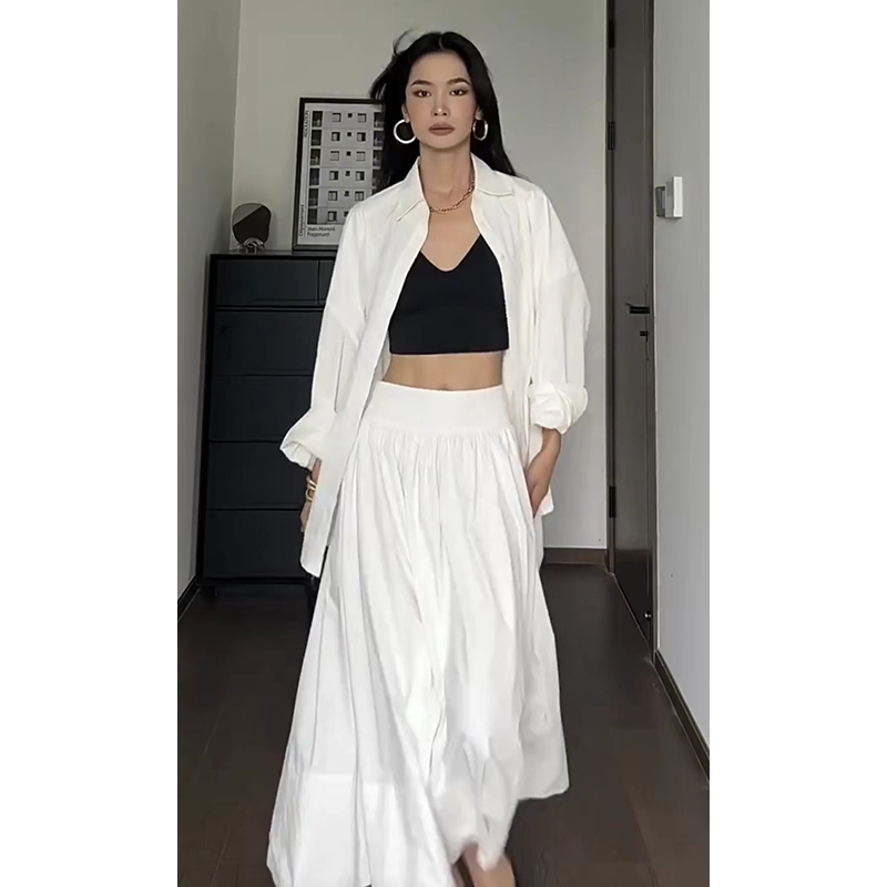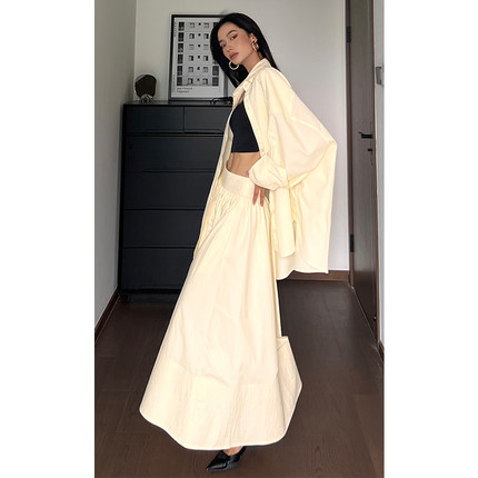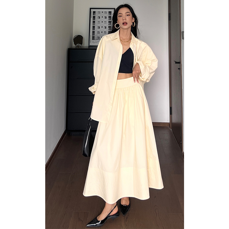 CIZZLEMORE 随性风宽松oversize衬衫女时髦重工大摆伞裙半裙套装