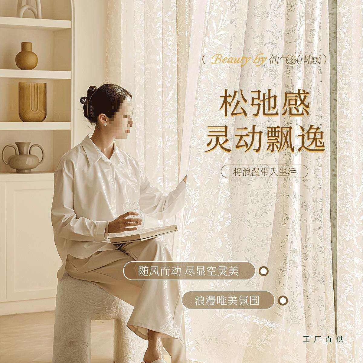 月枝影白纱帘法式小窗帘遮光2025新款卧室高级感透光不透人客厅布