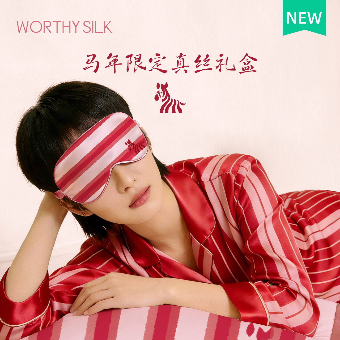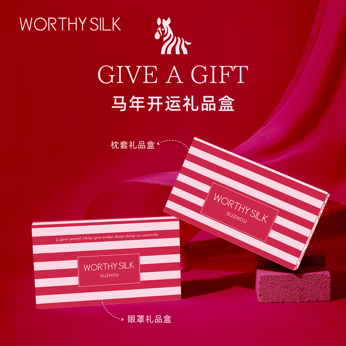 WORTHYSILK 新年真丝枕套眼罩礼盒 原创桑蚕丝伴手礼马年开运丝礼