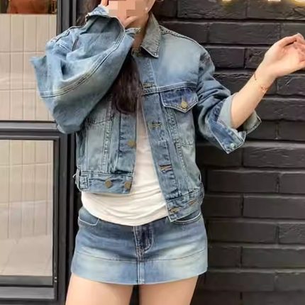 低腰半身裙裙裤两件套辣妹风复古牛仔外套女春秋新款时尚牛仔套装