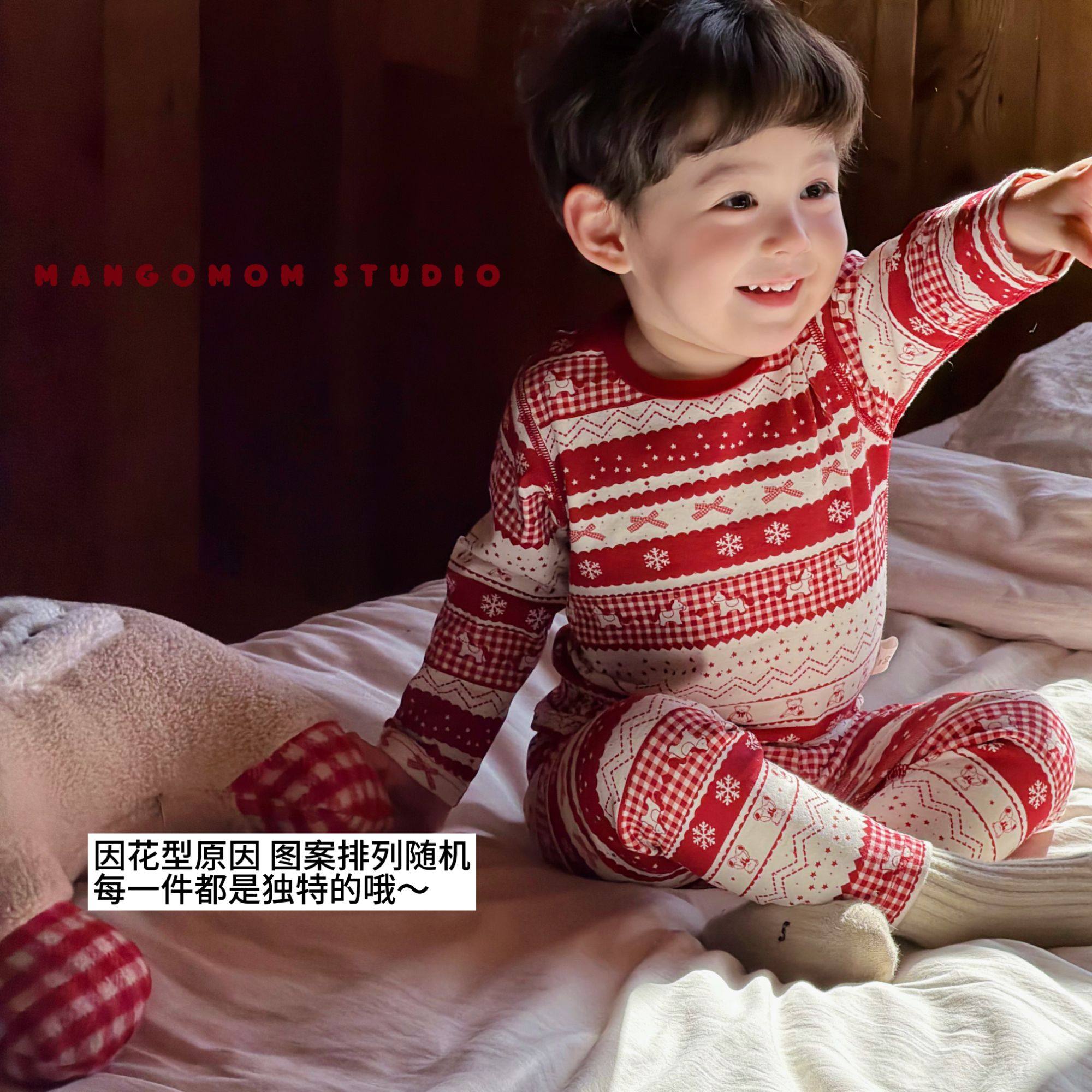 宝宝新年款亲子装家居服套装儿童本命年睡衣男童女童纯棉秋衣秋裤