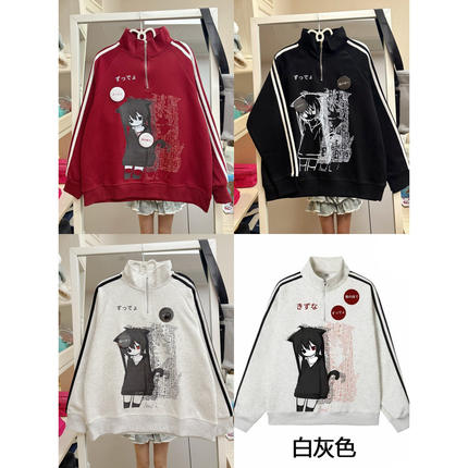 Blurredbear原创宅萌辣妹立领加绒卫衣女百搭纯棉二次元外套长袖