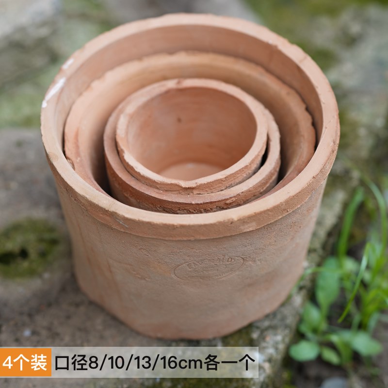 手工创意红陶粗陶黑花盆侘寂风多肉盆瓦盆透气吸水土陶盆具套装