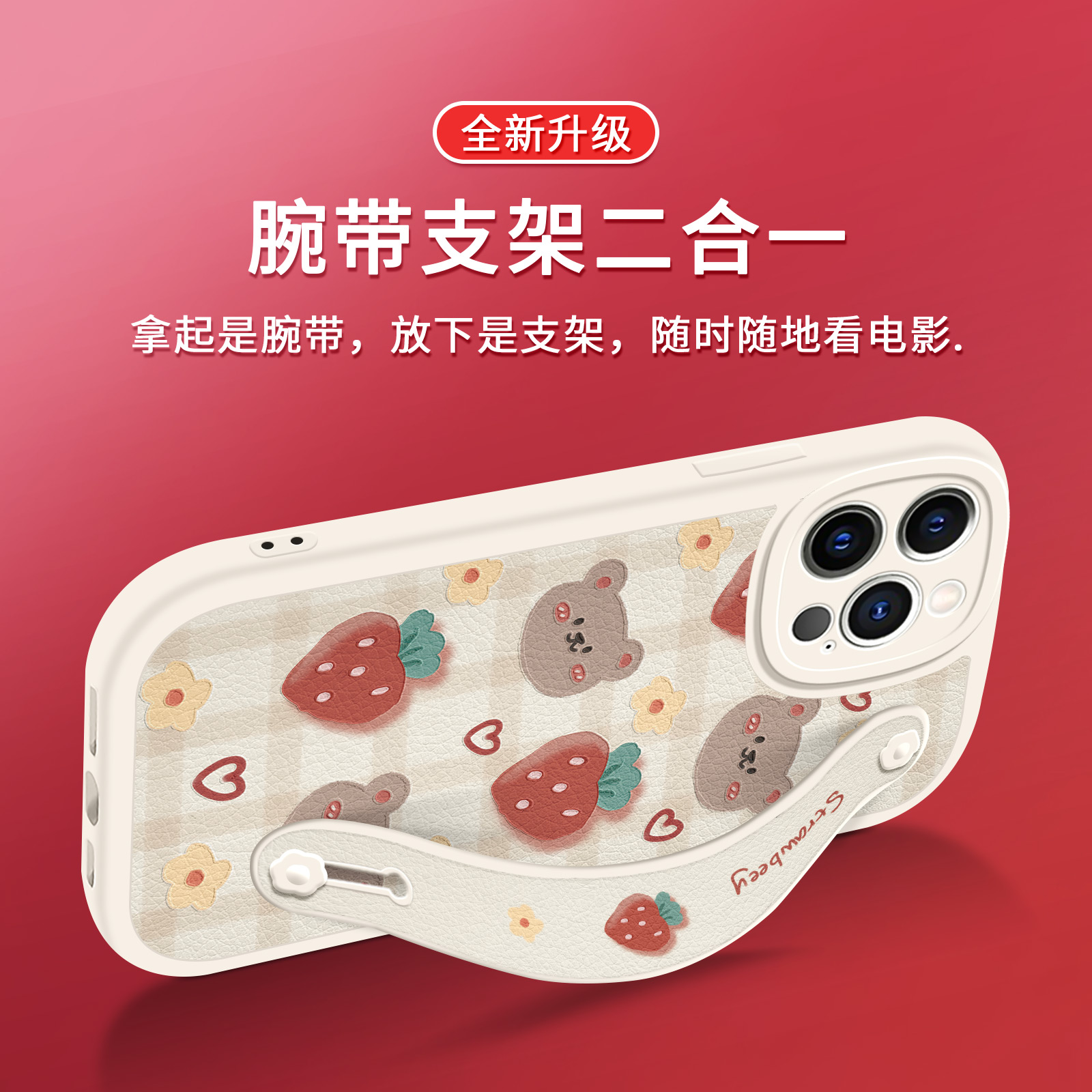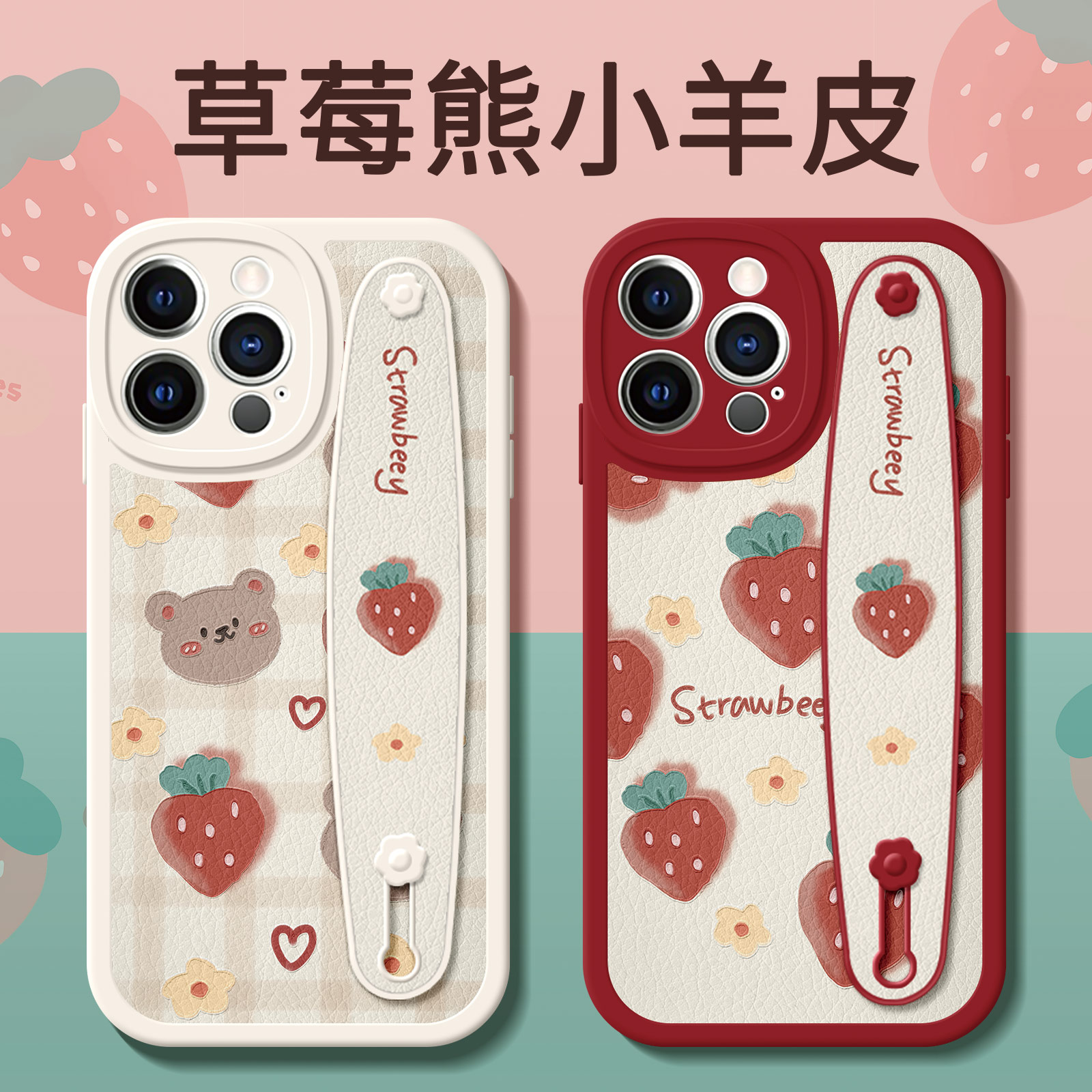 适用于苹果16Pro手机壳15草莓熊14ProMax新iPhone12腕带11支架13保护套XS小花7硅胶8网红SE女plus防摔X新款XR