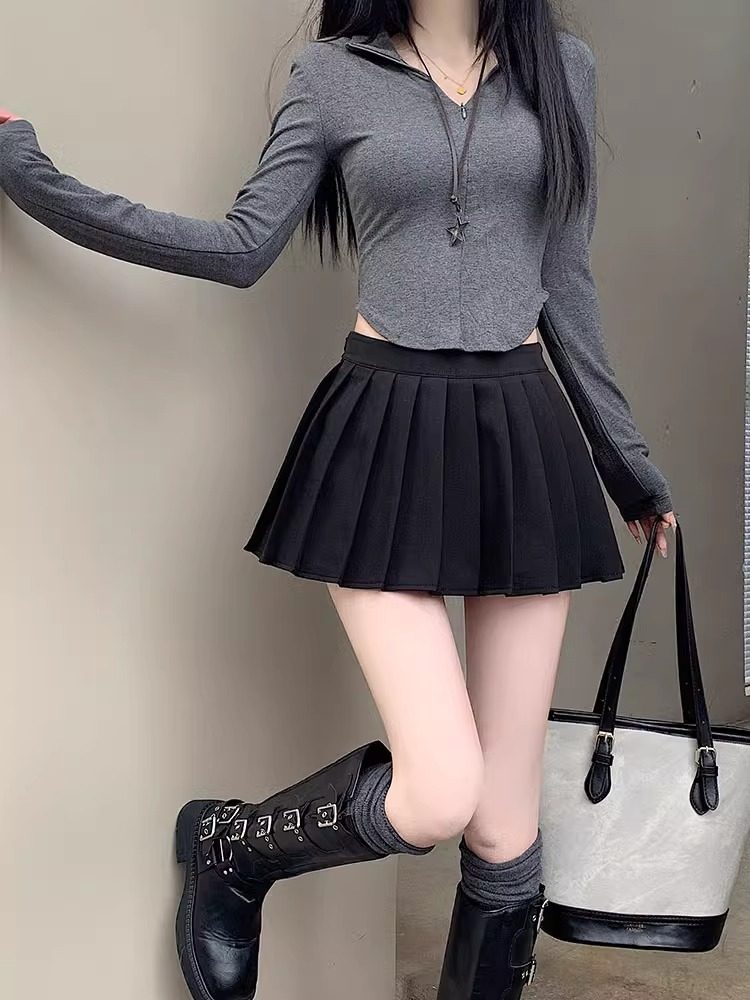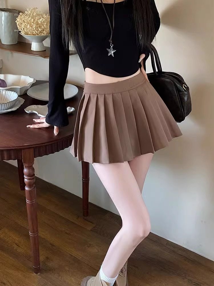 辣妹百褶裙女夏季新款学院风JK防走光半身裙高腰A字裙短裙子裙裤
