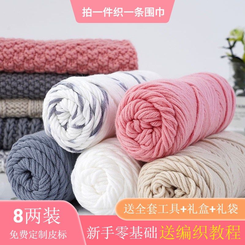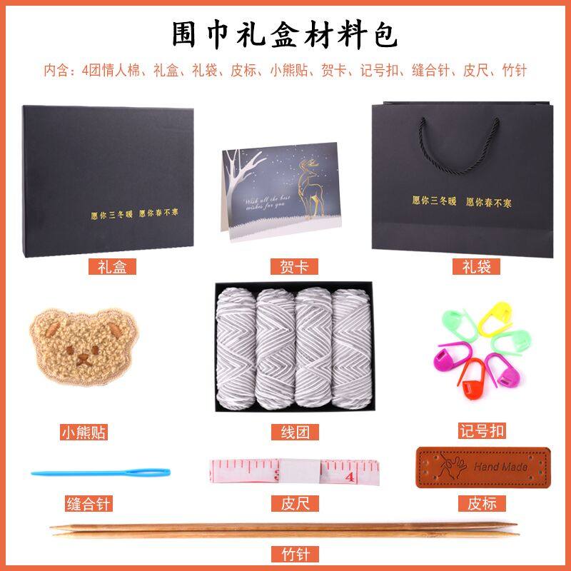 情人棉毛线自织围巾材料包送男女朋友围脖中粗毛线团手工编织diy