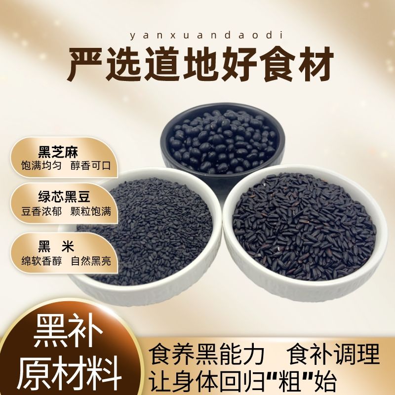 三黑代餐粉黑芝麻黑米黄心黑豆以黑养黑现磨熟五谷杂粮冲饮500克