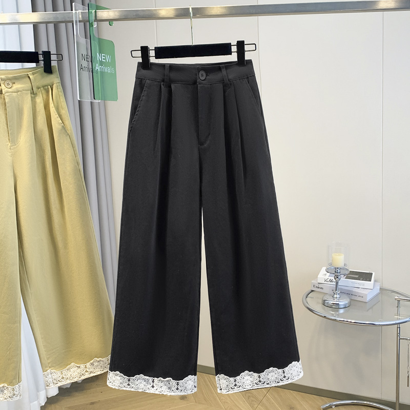 九分阔腿裤女大码蕾丝拼接休闲裤