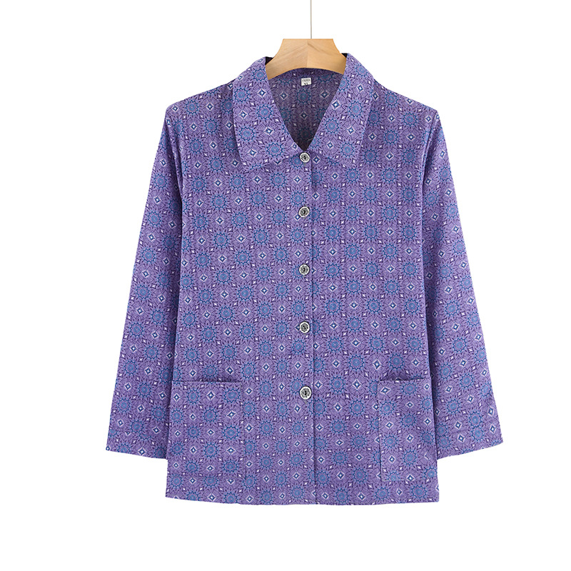 奶奶夏装长袖雪纺衬衫70岁妈妈翻领衬衣中老年人女装夏季薄款开衫