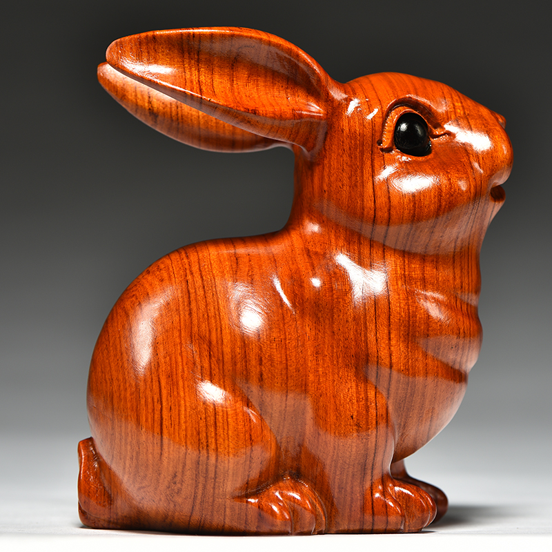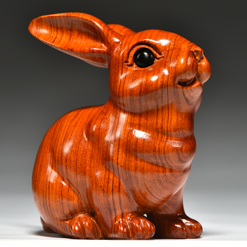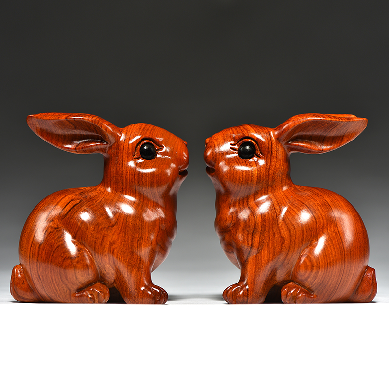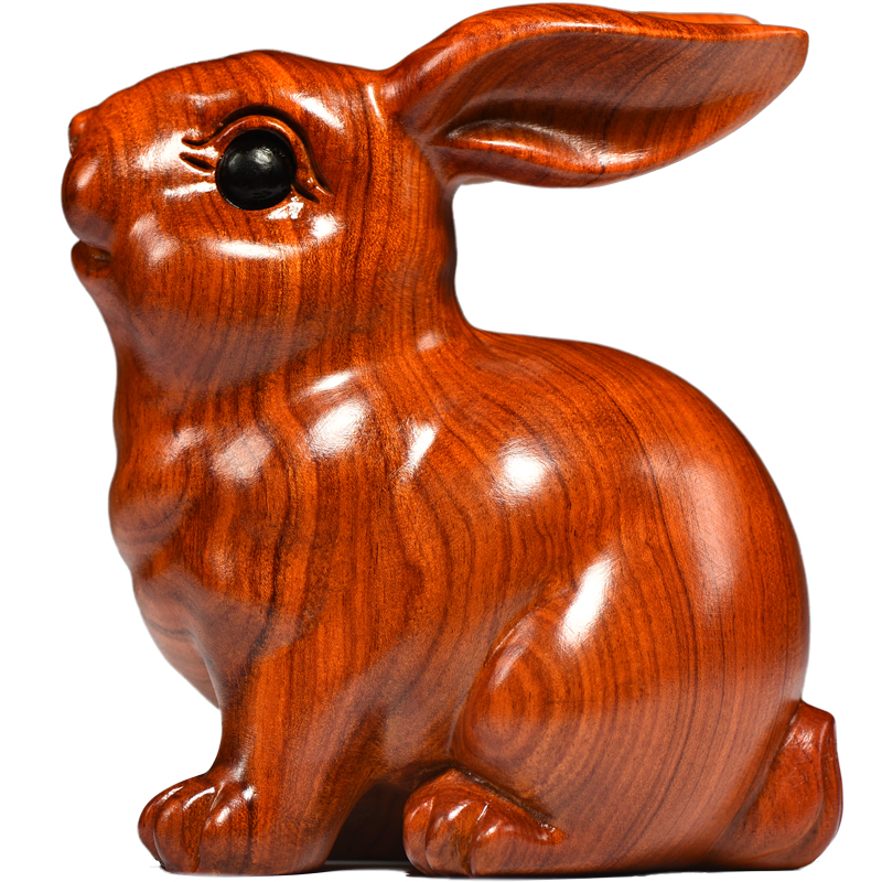 花梨实木质雕刻兔子摆件木制十二生肖木头兔吉祥物家居客厅装饰品