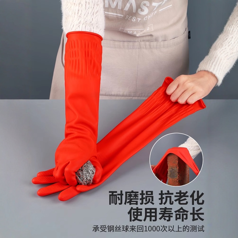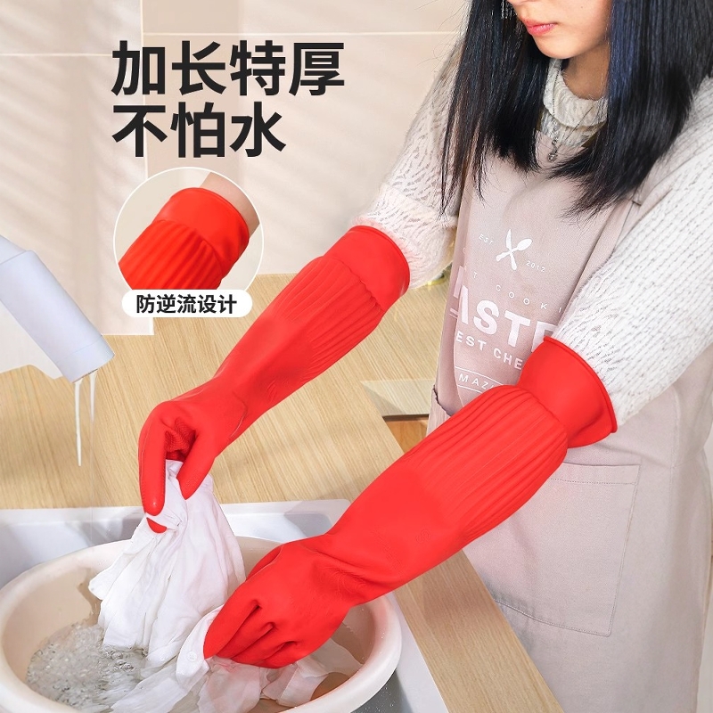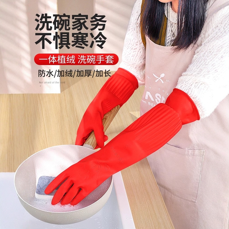加绒加长手套厨房家务橡胶耐用洗碗女防水洗衣服胶皮加厚乳胶冬季