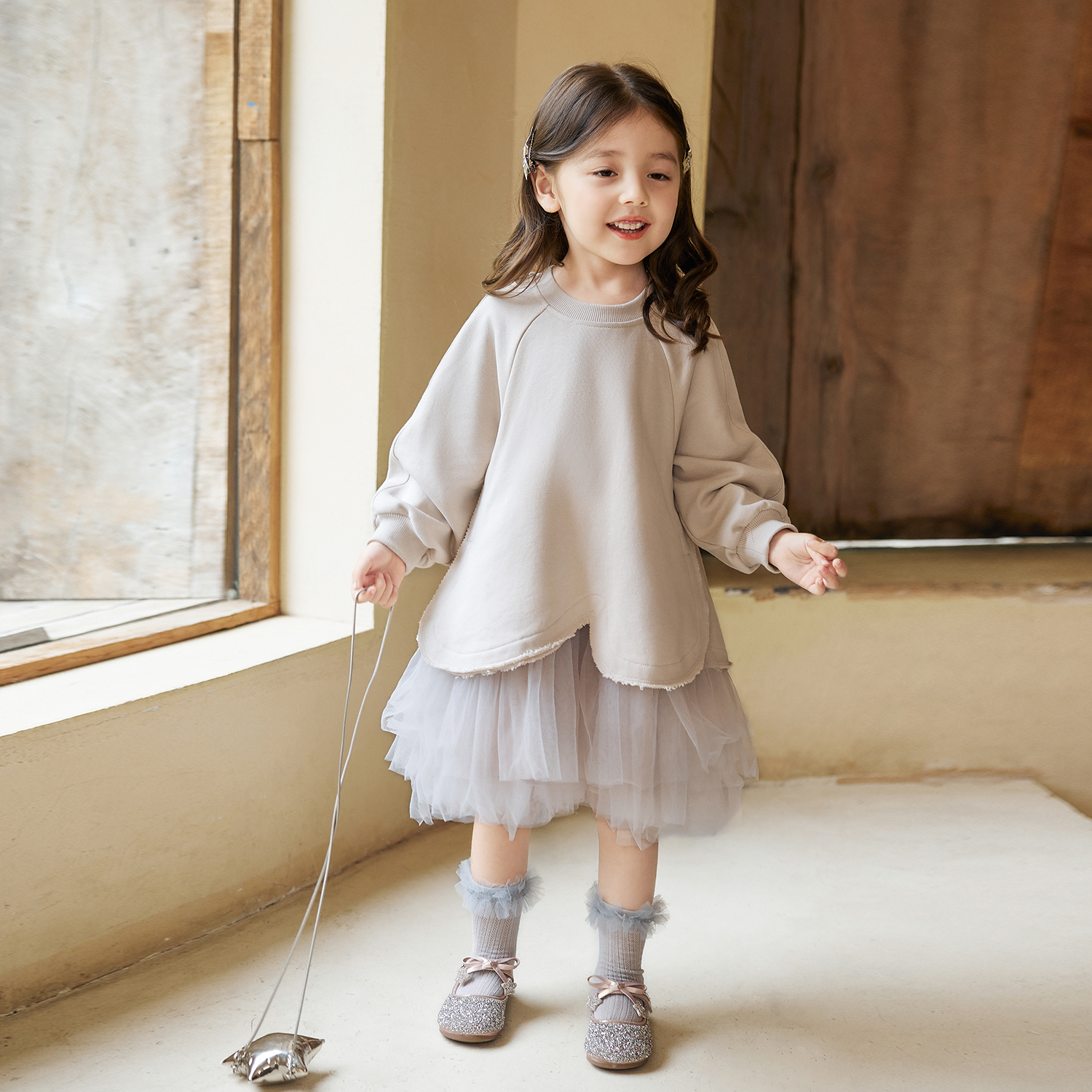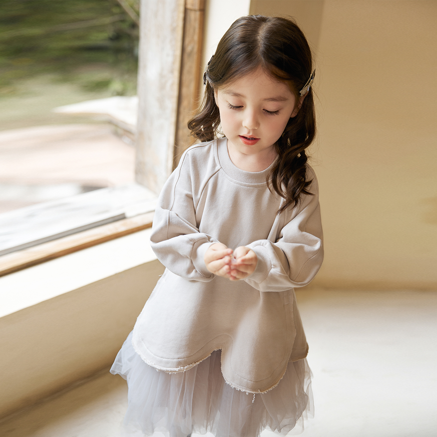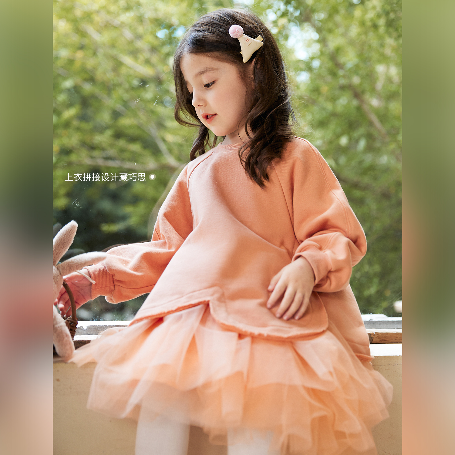 小O宝Okids童装 宝宝假两件网纱卫衣裙女2025秋季女童拼接连衣裙