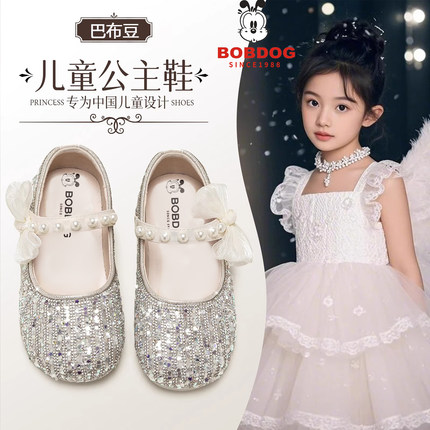 巴布豆真皮女童公主鞋2026春秋季新款儿童水晶鞋子软底小皮鞋单鞋