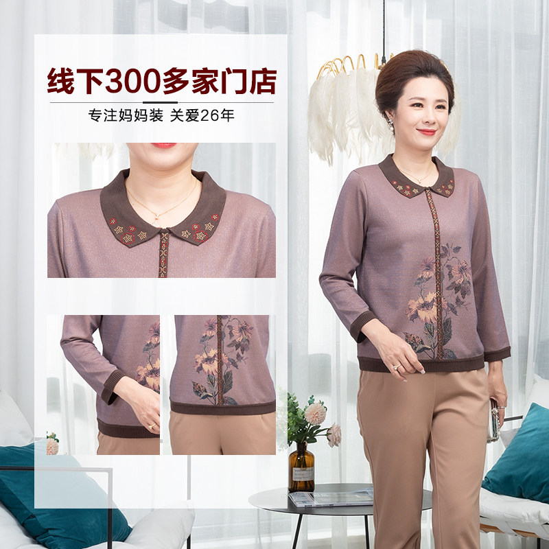 依佈2026春装新款气质翻领针织衫中老年人简约雅致妈妈装上衣