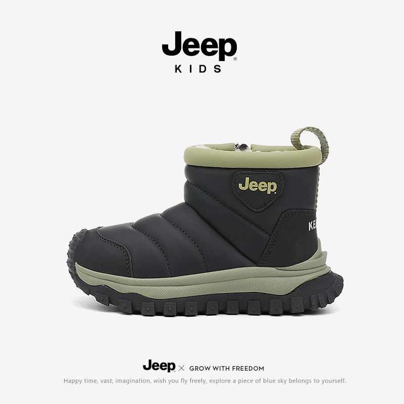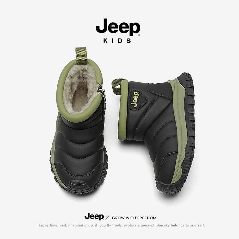 jeep儿童雪地靴防水加厚棉靴新款2024加绒女童靴子冬季男童雪地棉