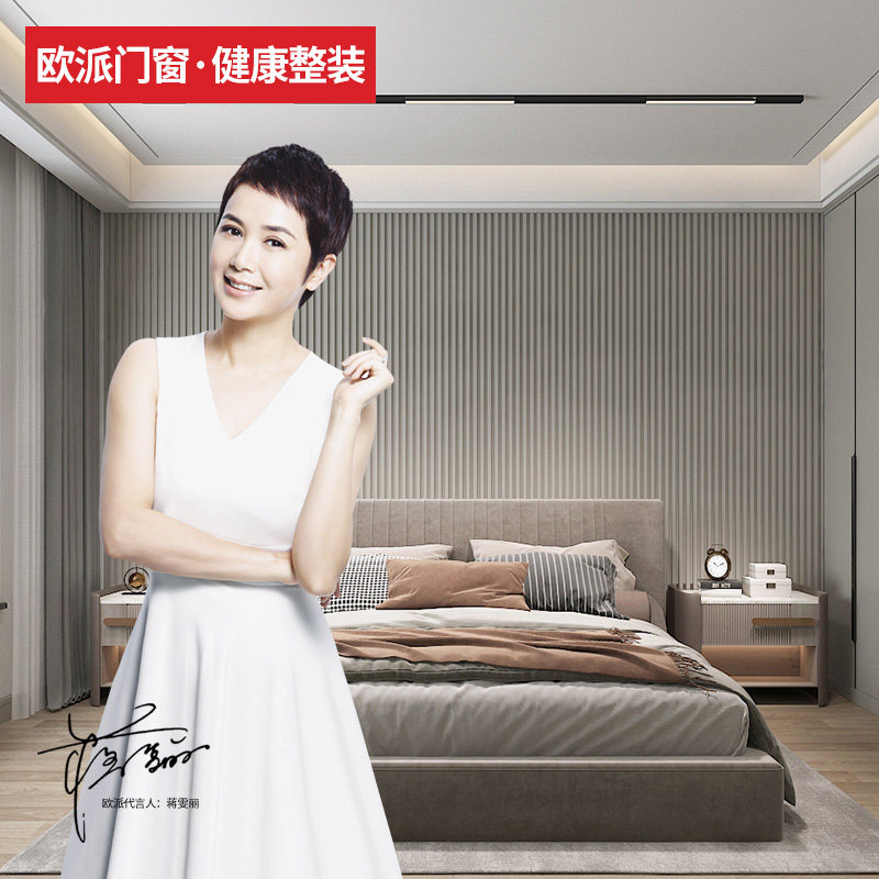欧派碳晶板木饰面无缝护墙板沙发原木岩板背景墙室内装修饰面墙板