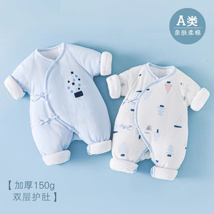 全棉纯棉冬季新生婴儿衣服150g加厚连体衣0-6月宝宝52码冬装外出