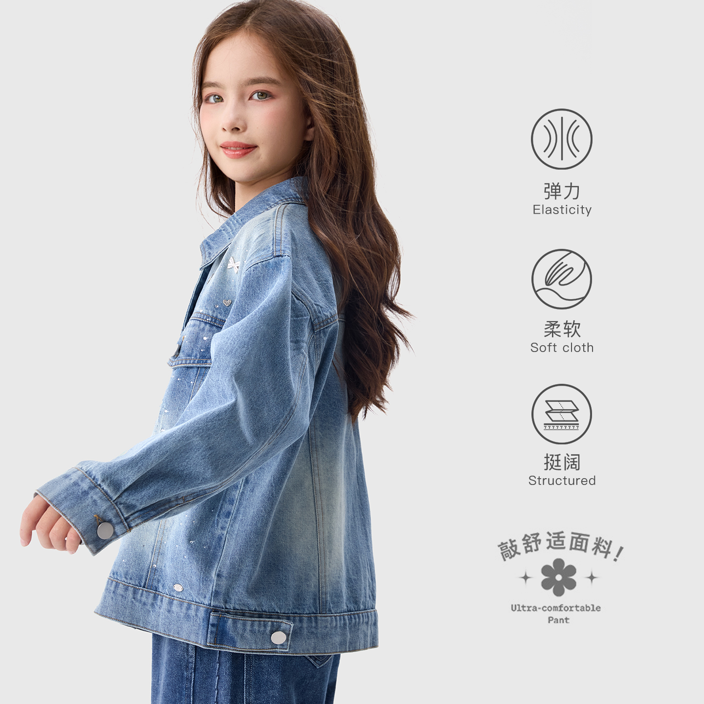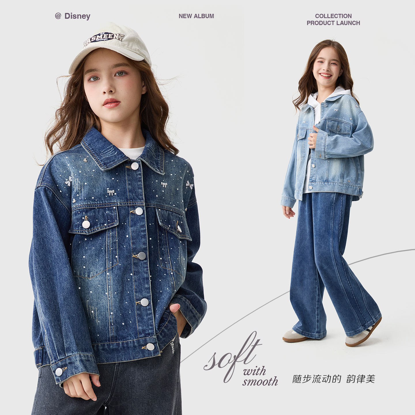 迪士尼女童牛仔外套秋季2025新款儿童洋气上衣中大童时尚春秋童装
