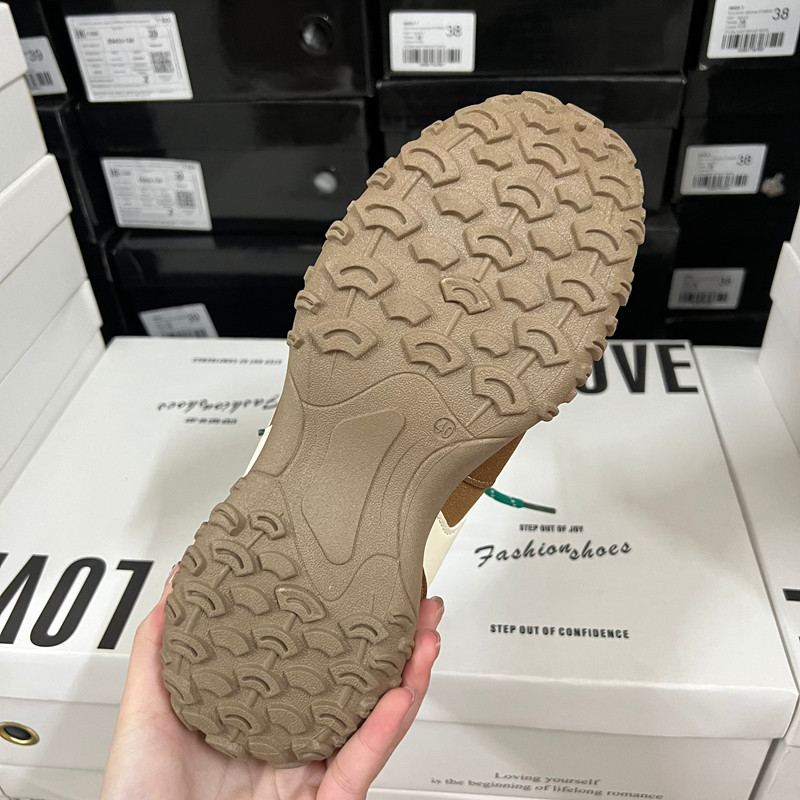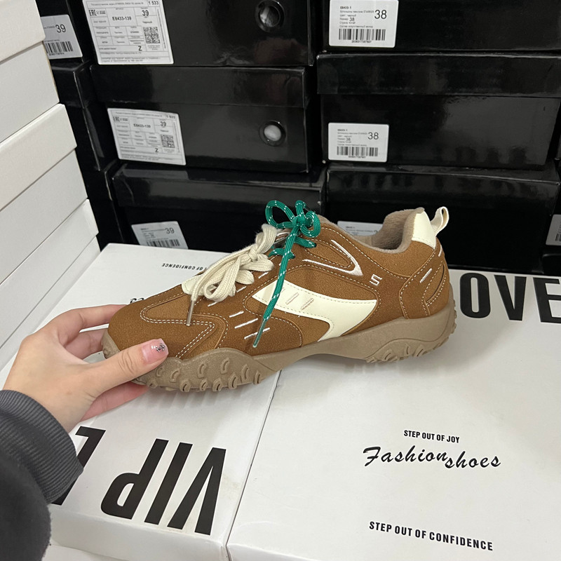 复古风时尚女鞋拼色圆头系带软底内增高休闲运动鞋德训单鞋