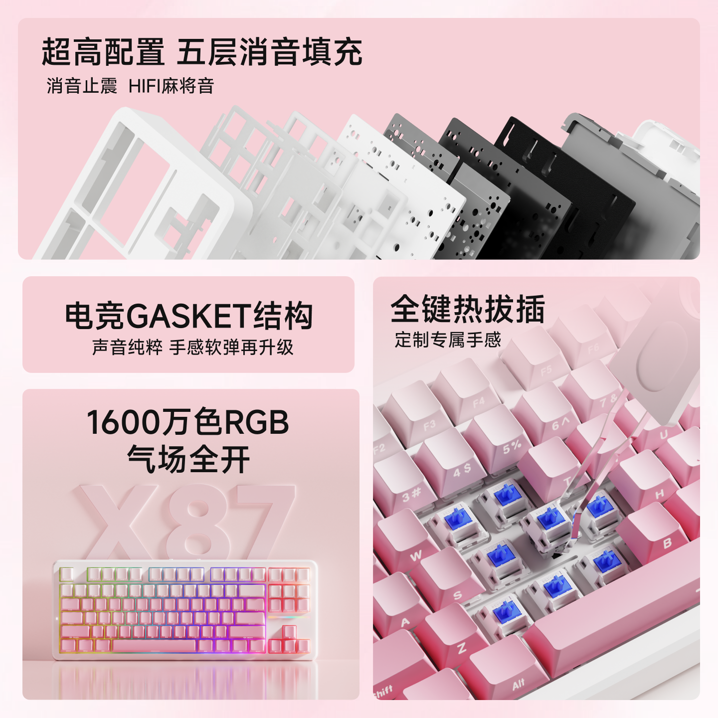 前行者X87客制化机械键盘有线台式电脑电竞游戏专用女生办公侧刻