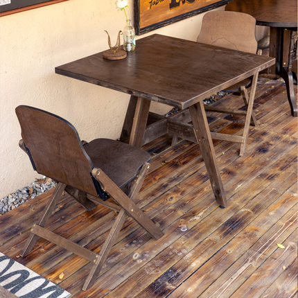 简约复古实木大圆桌茶桌椭圆桌折叠椅子小户型家用餐桌咖啡桌饭桌