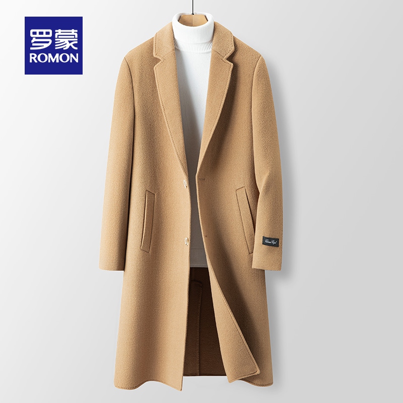 罗蒙男士100%羊毛长款双面呢大衣