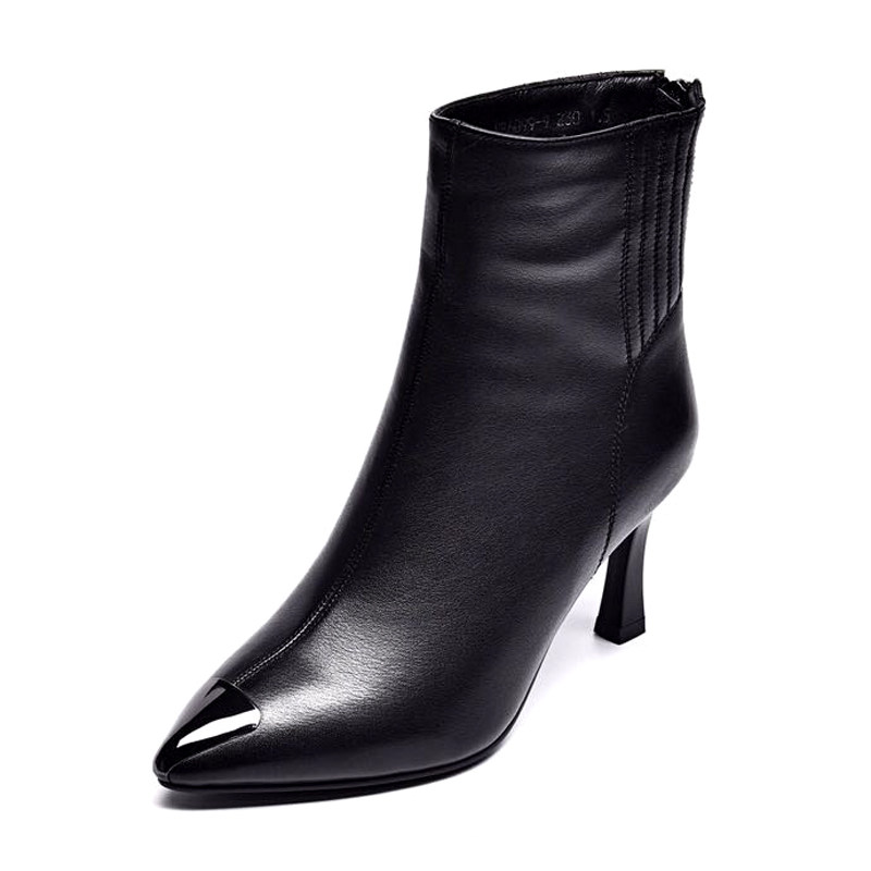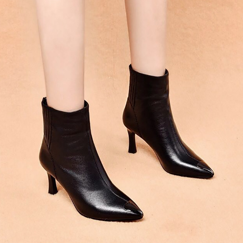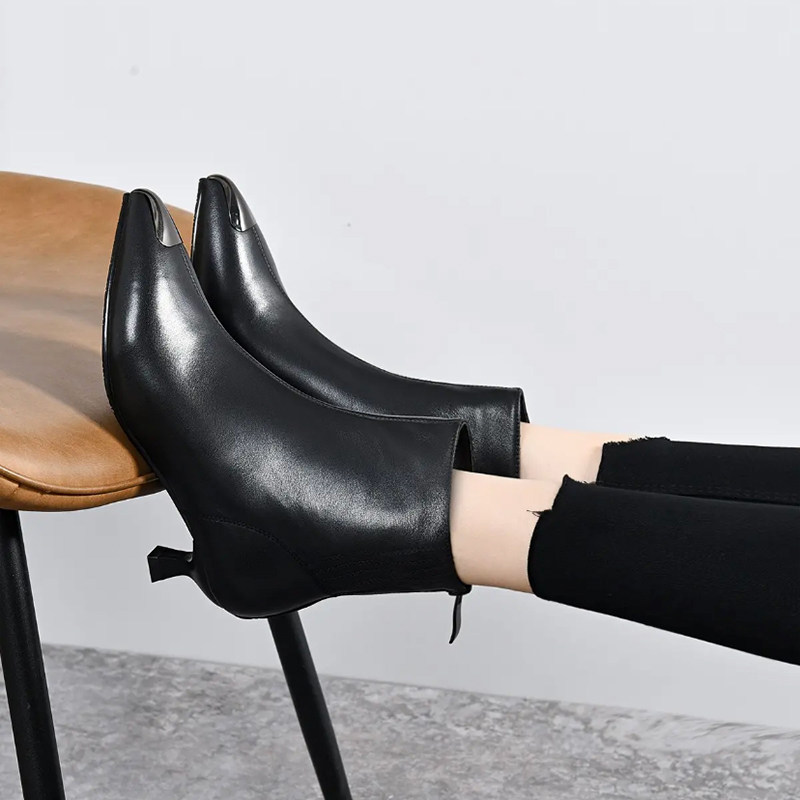 断码清仓2025款秋冬细跟真皮短靴尖头高跟鞋女小跟马丁靴春季单靴