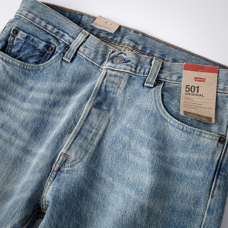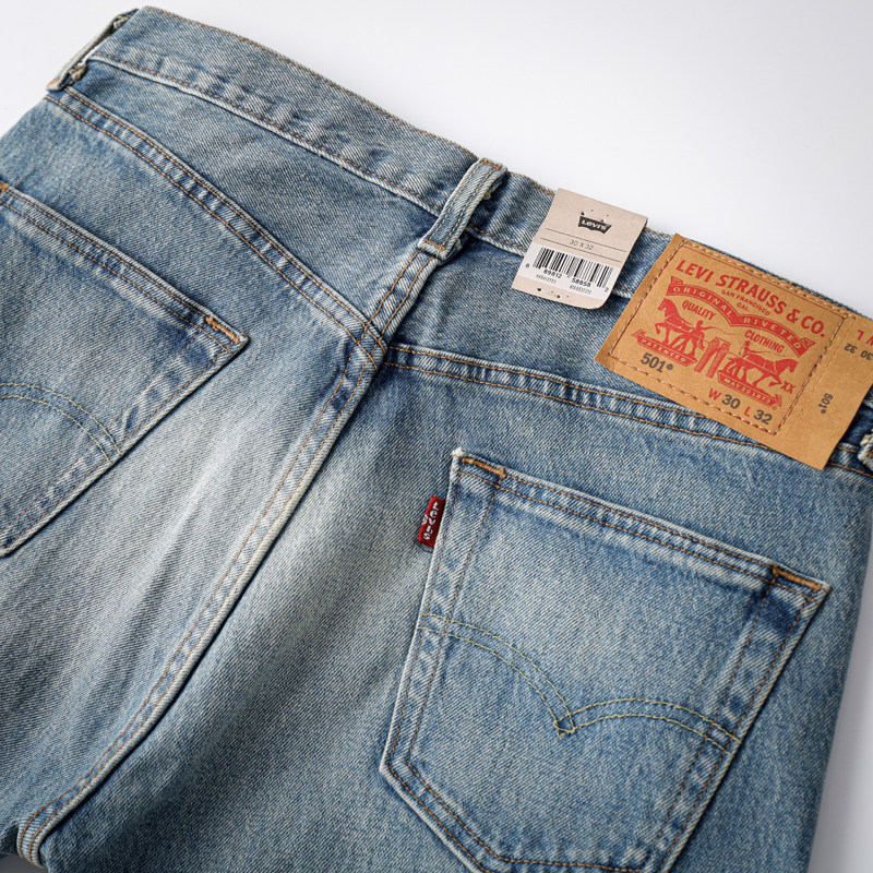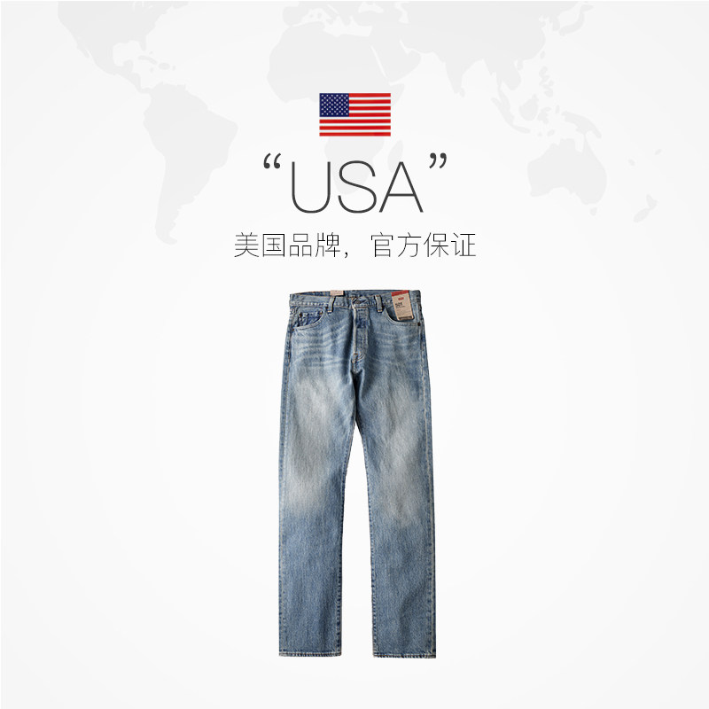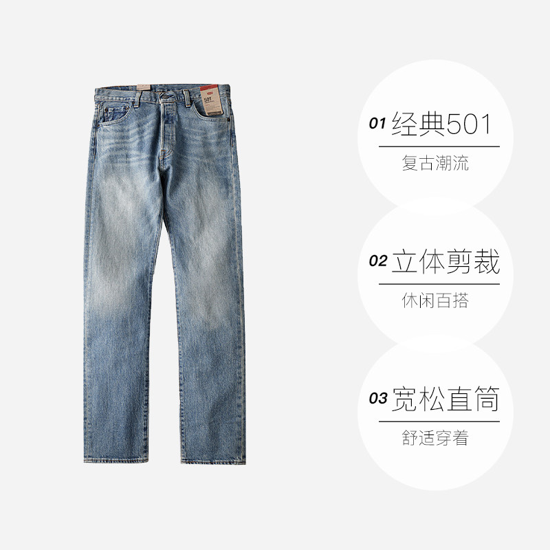Levi’s李维斯501经典中腰水洗磨白浅色牛仔裤男士宽松直筒长裤