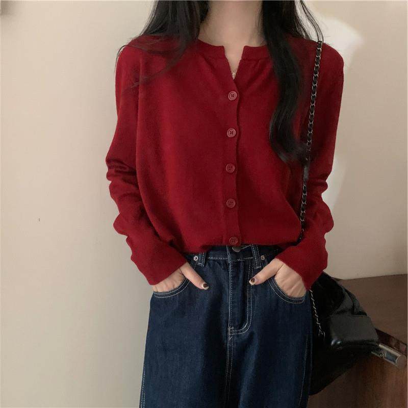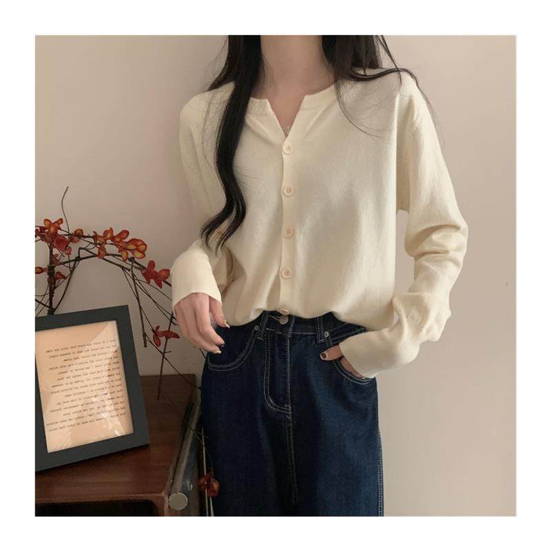 软糯亲肤薄款羊毛针织开衫女韩版V领宽松短款小外搭毛衣外套上衣