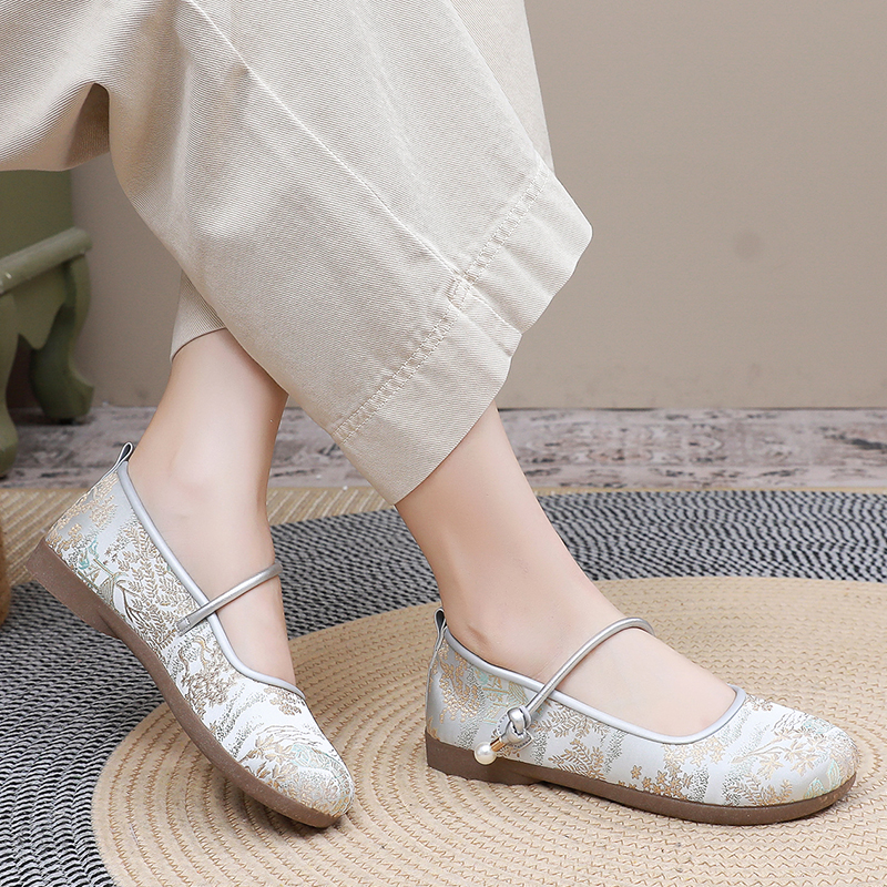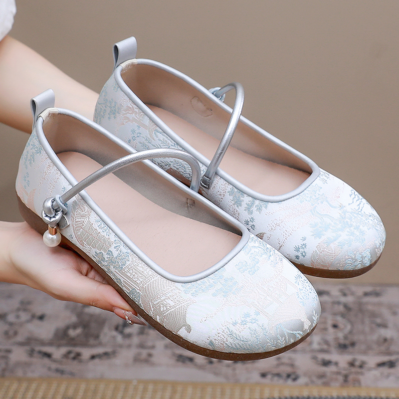 老北京布鞋女新款中国风复古风绣花鞋牛筋底软底舒适妈妈鞋配裙子