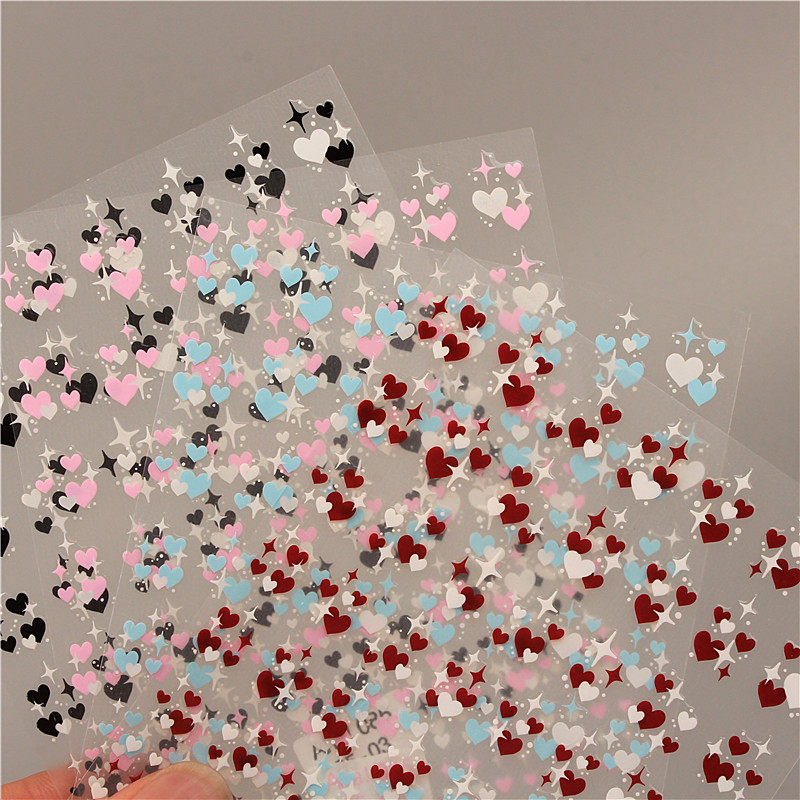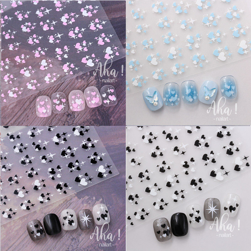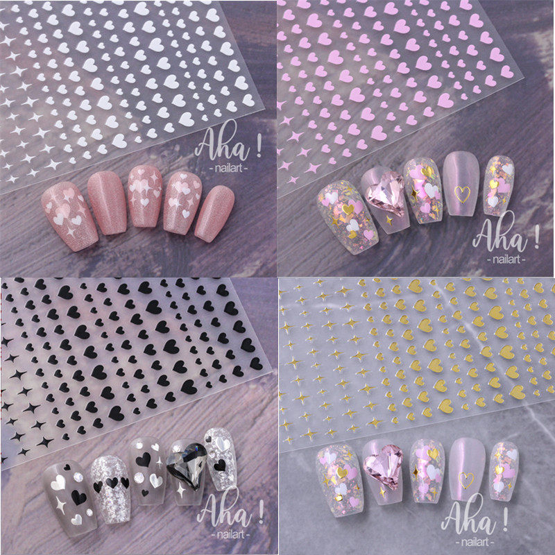 网红金银色镂空爱心星芒美甲贴纸黑白色歪心桃心形指甲装饰贴花