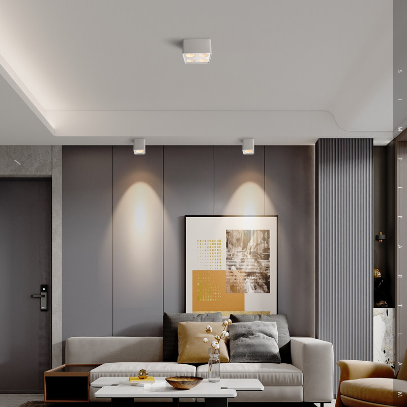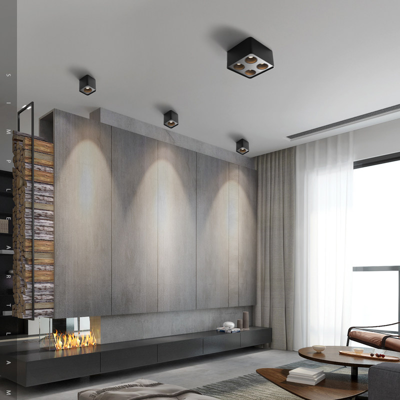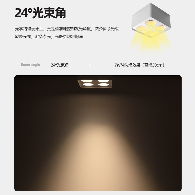 四头明装射灯可调角度方形天花灯吸顶斗胆灯客厅全光谱无主灯照明