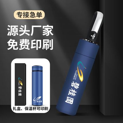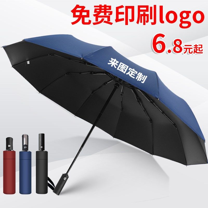 大号男士折叠黑胶伞定制logo图案印全自动晴雨两用女遮阳太阳雨伞