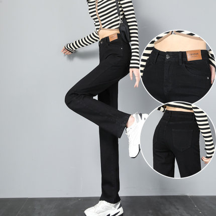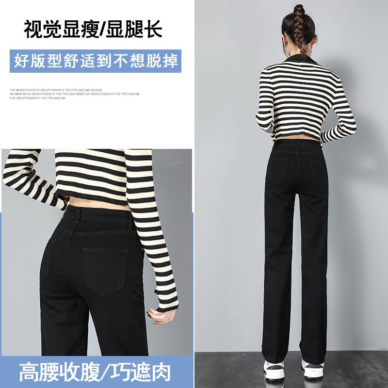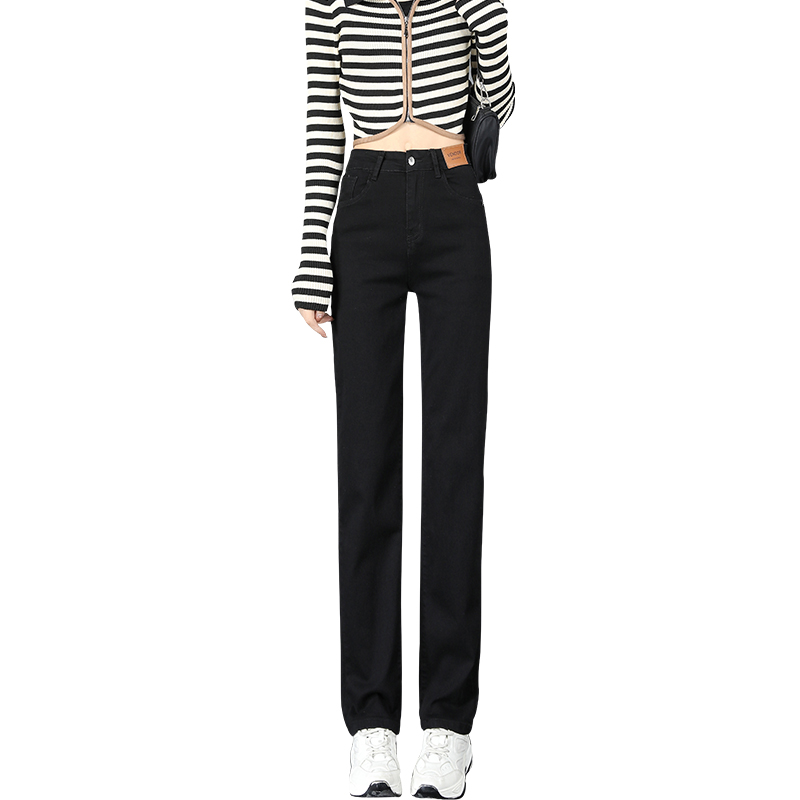 黑色窄版直筒牛仔裤女秋季2025新款高腰显瘦烟管裤高个子拖地裤子