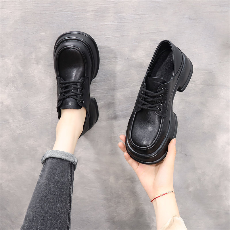 乐福鞋女2025新款英伦风厚底小皮鞋学生松糕底短靴春秋圆头大码41