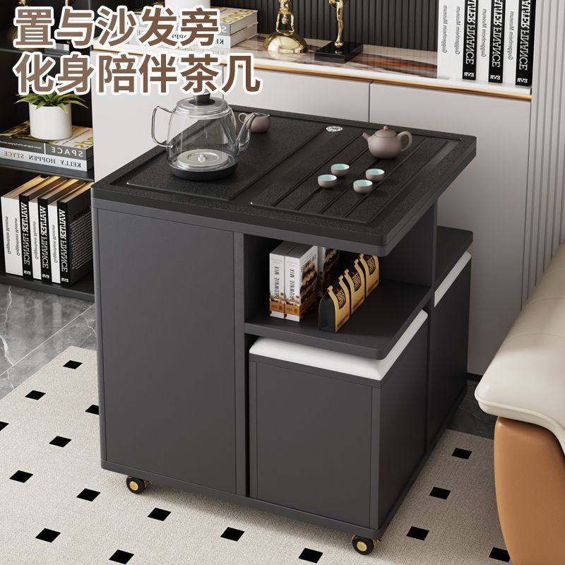 移动茶桌家用小户型火烧石茶台功夫茶几北欧多功能茶几阳台小茶车