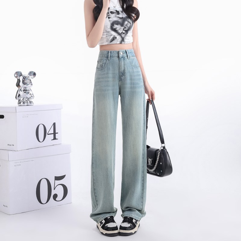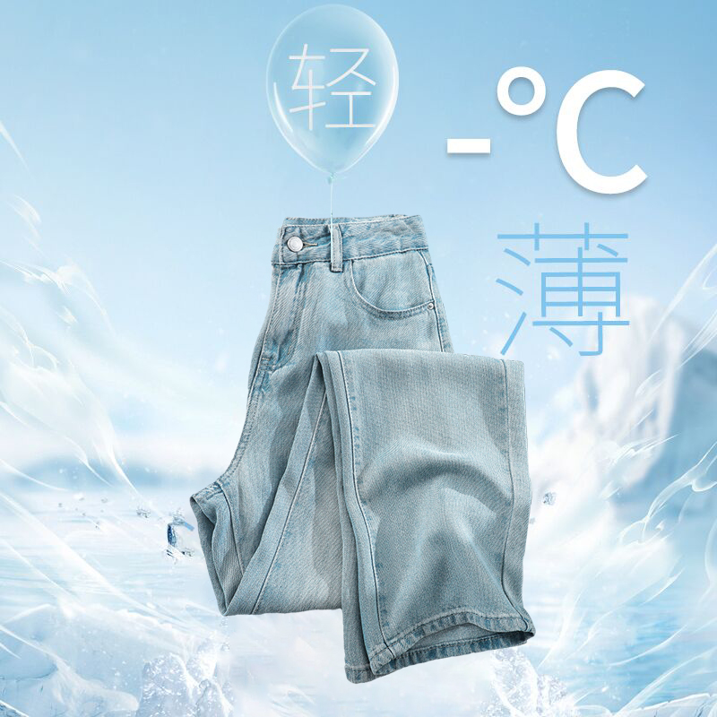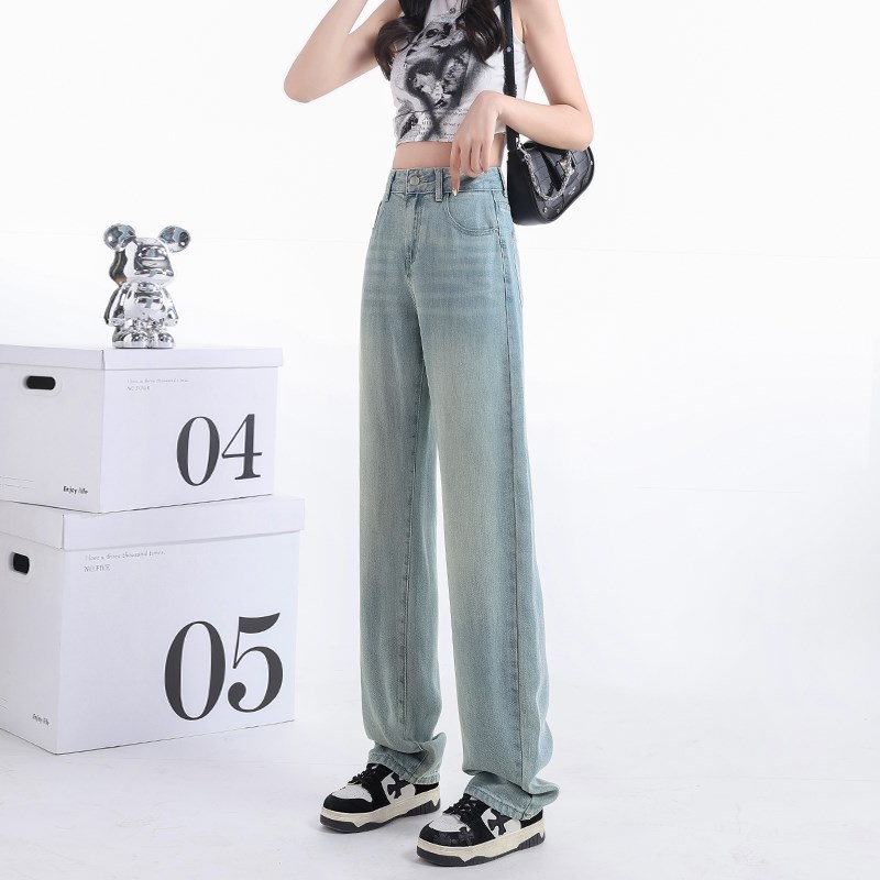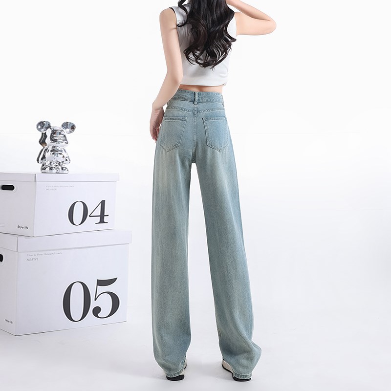 阔腿天丝牛仔裤女2024年夏季薄款高腰显瘦垂感九分小个子拖地裤女