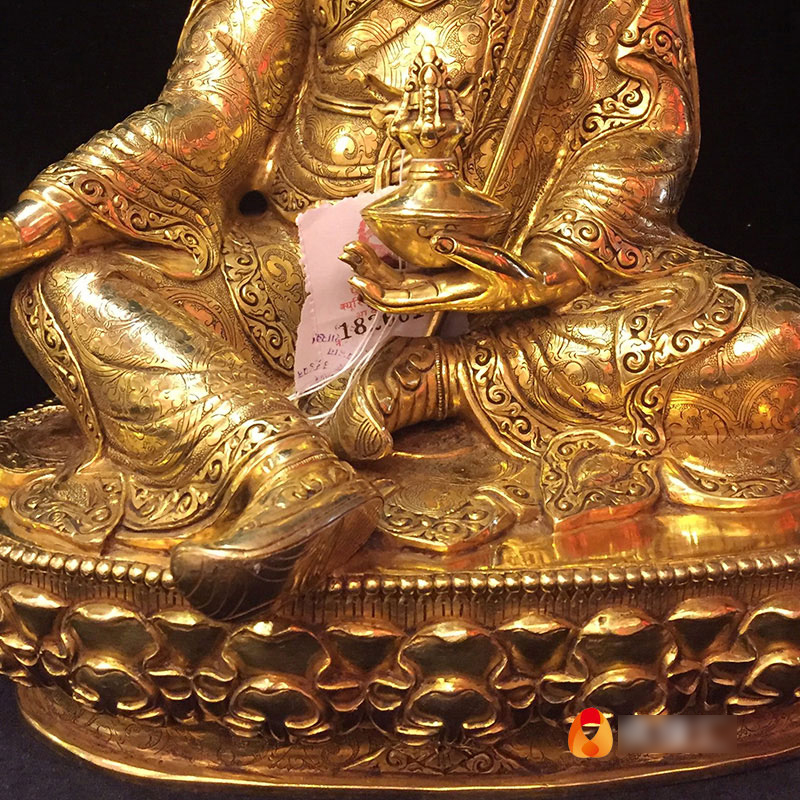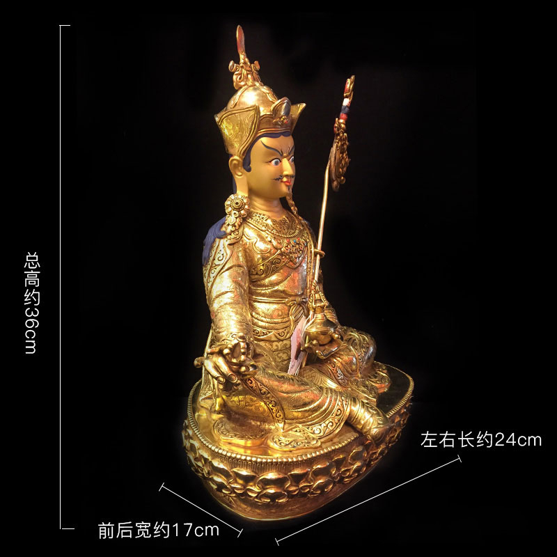莲花生大士室内摆件尼泊尔铜鎏金12寸莲花生大师铜像