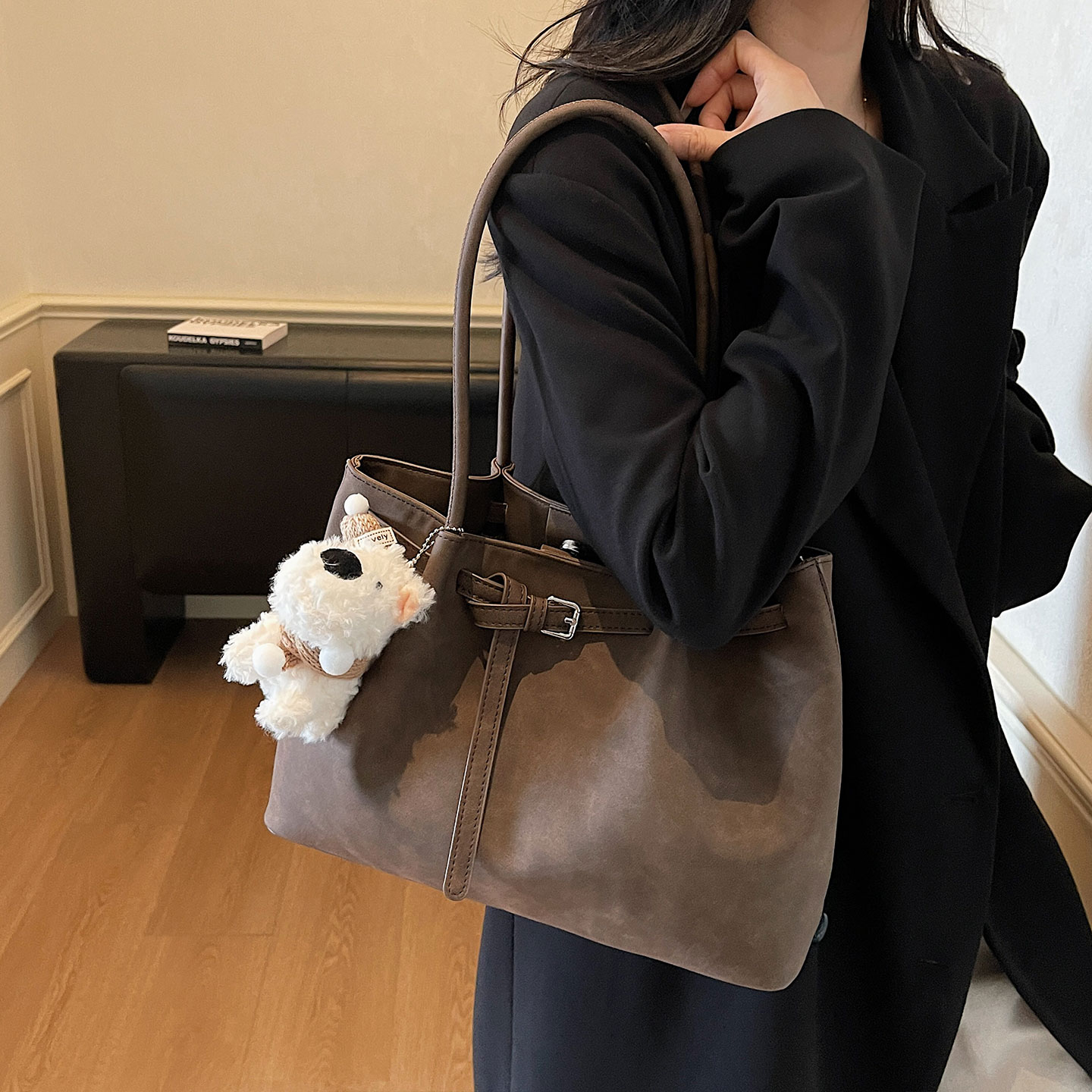 复古麂皮绒托特包女2025新款时尚小众通勤腋下包百搭大容量单肩包