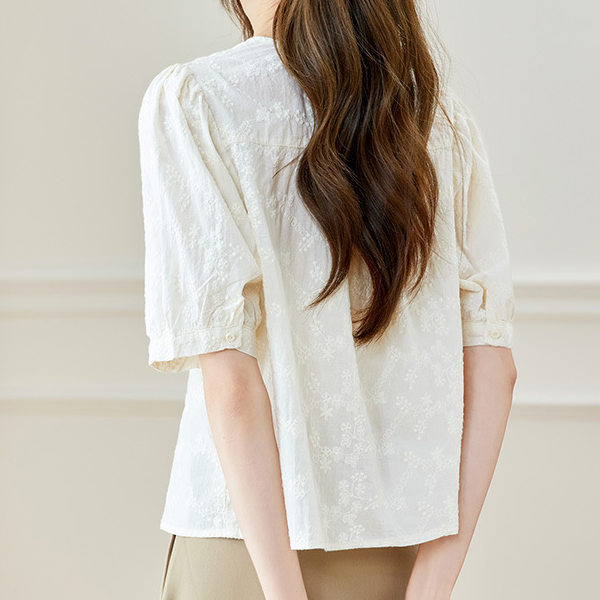高端刺绣圆领纯棉短袖白色衬衫女春夏季新款上衣别致宽松显瘦小衫