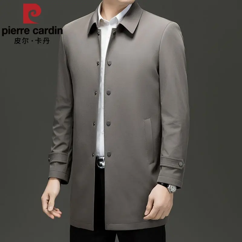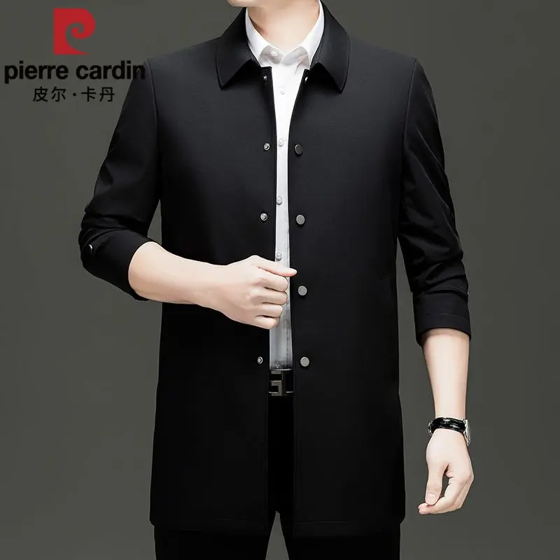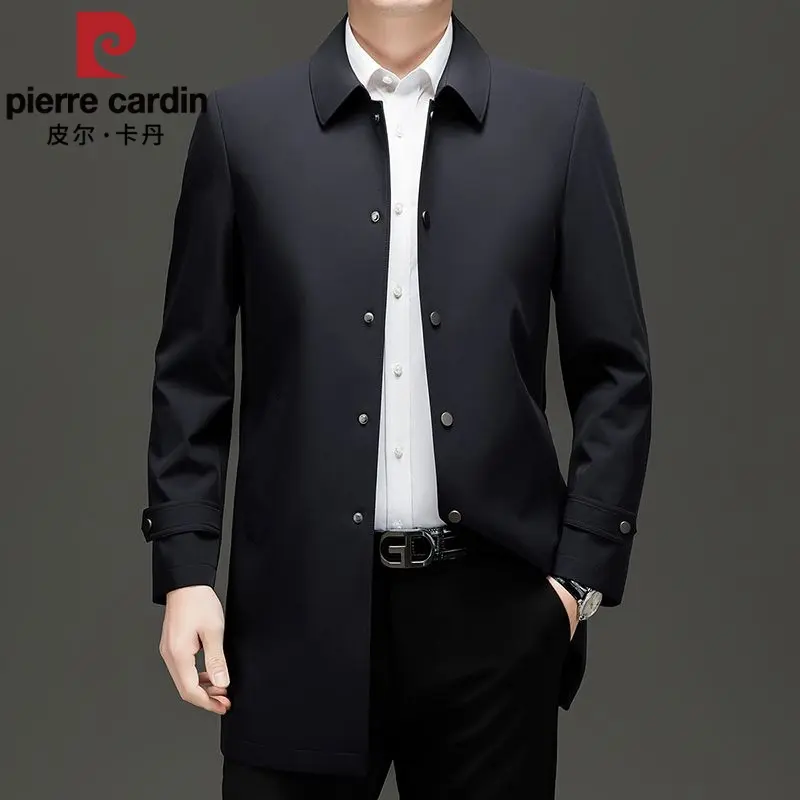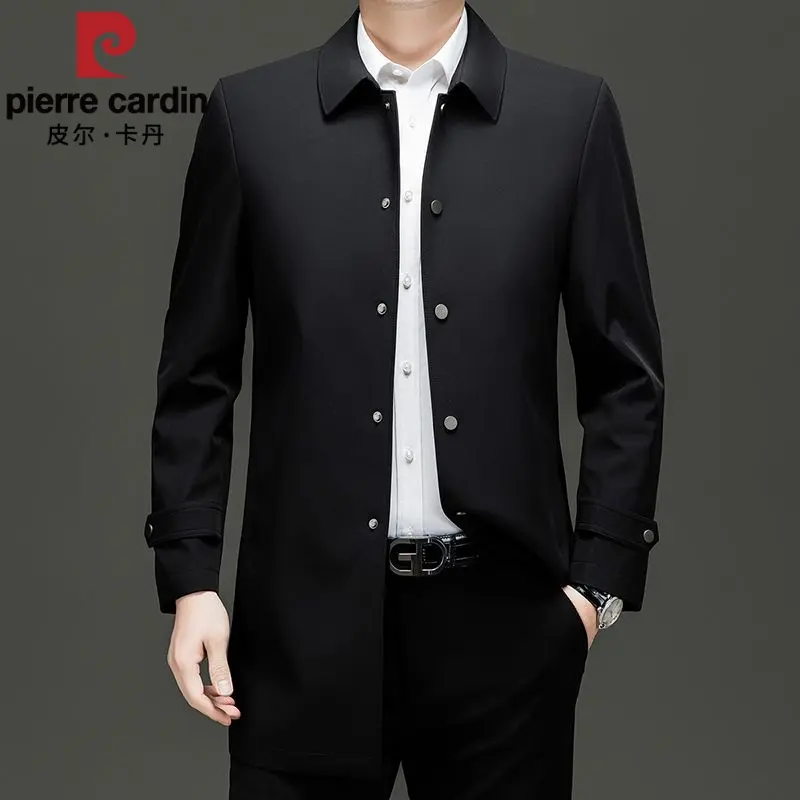 皮尔卡丹高端男士中长款风衣春秋季中老年爸爸装商务休闲夹克外套
