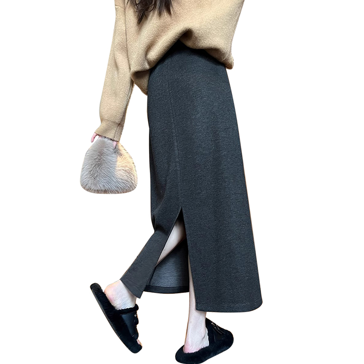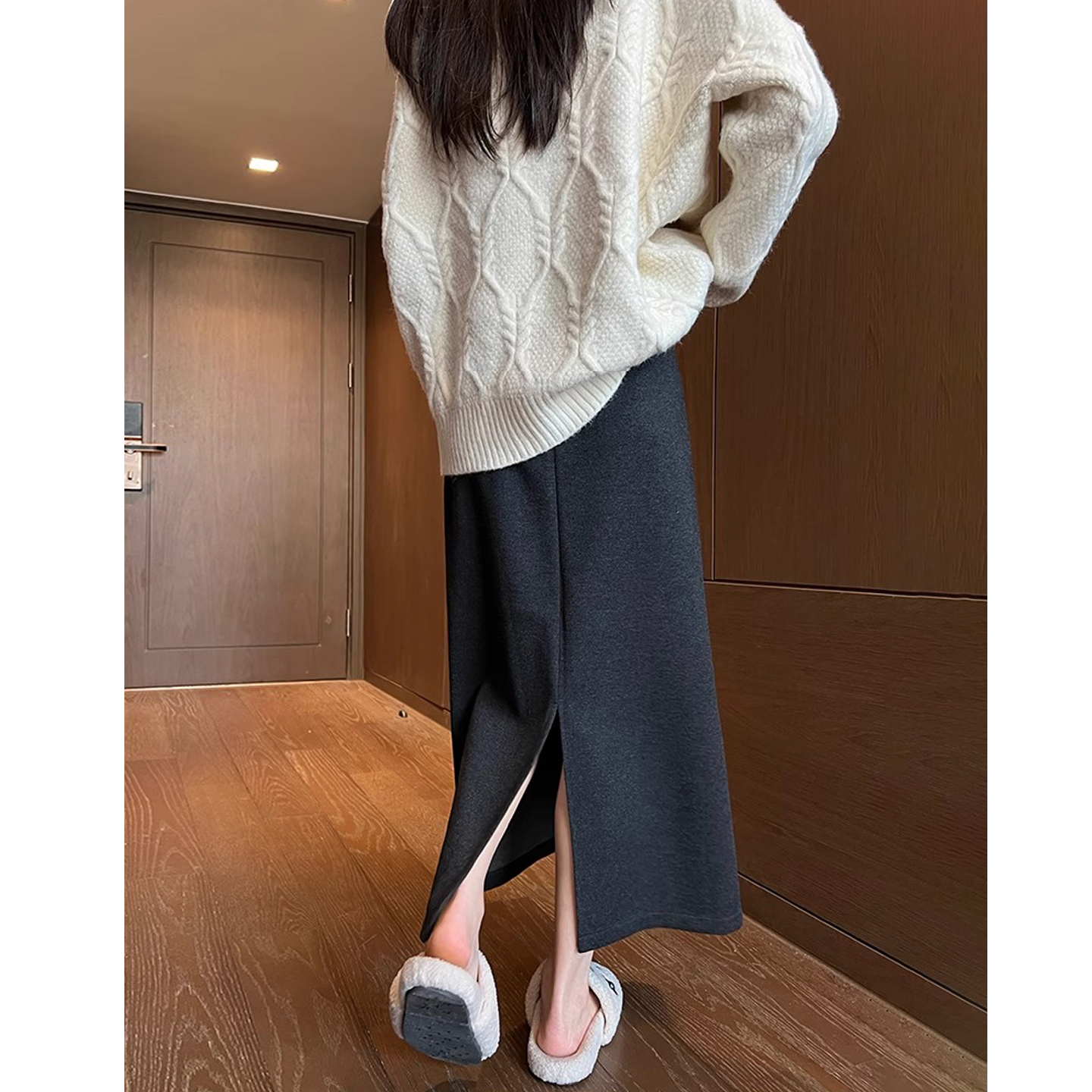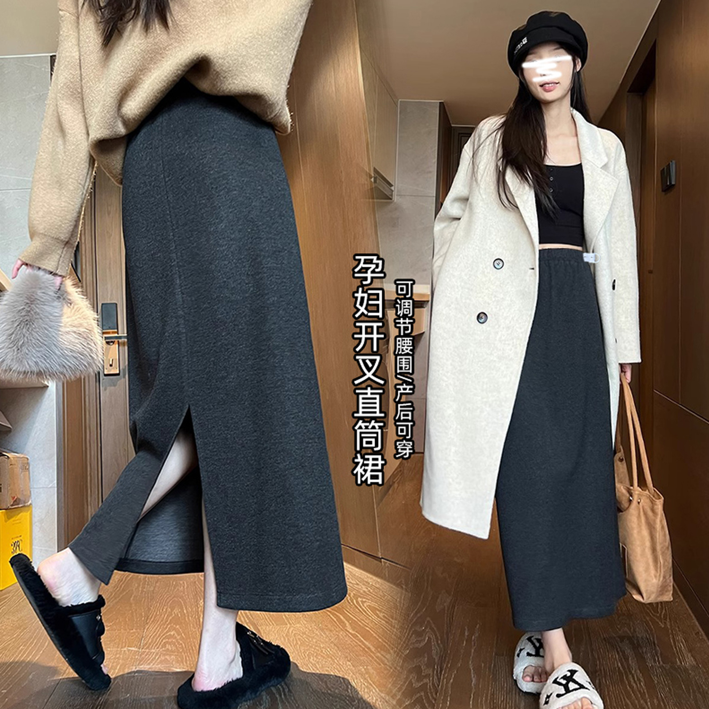 孕妇中长款半身裙秋冬装无托腹羊毛呢显瘦后开叉直筒包臀裙子春秋