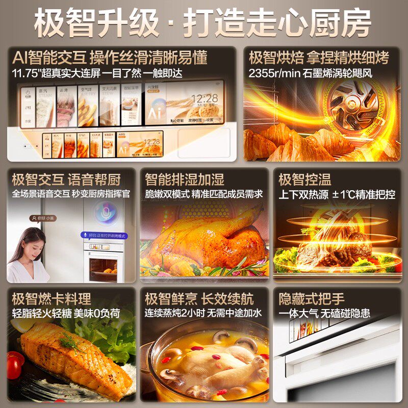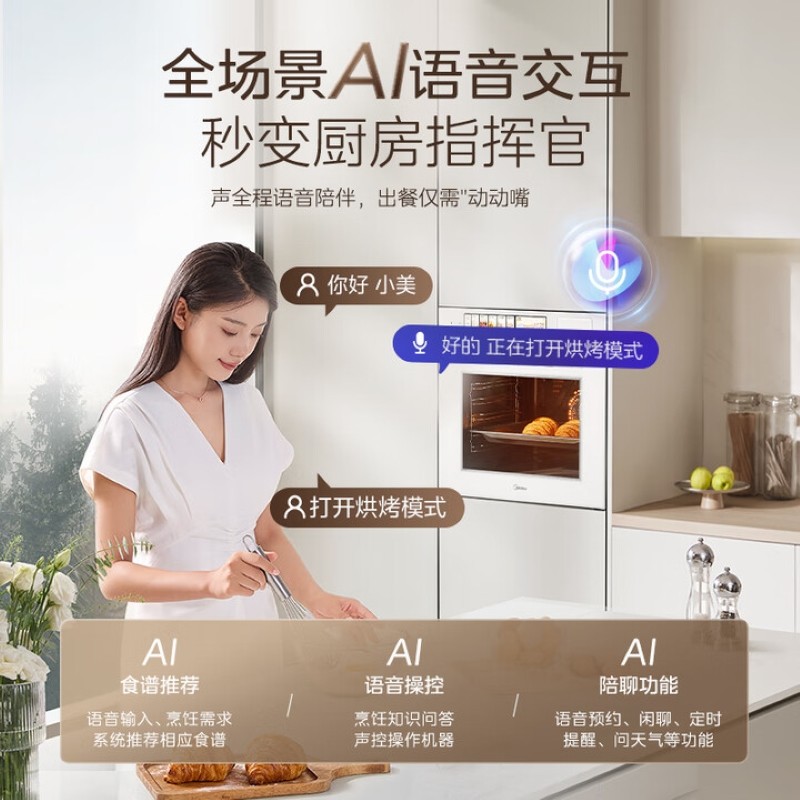 【新品首发】美的灵眸蒸烤箱E7嵌入式蒸烤一体机大容量AI语音控制