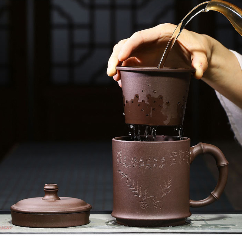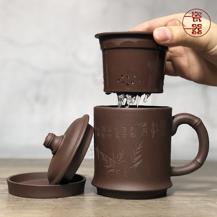紫砂杯过滤内胆泡茶杯茶水分离y男士高档办公室大容量女士陶瓷杯