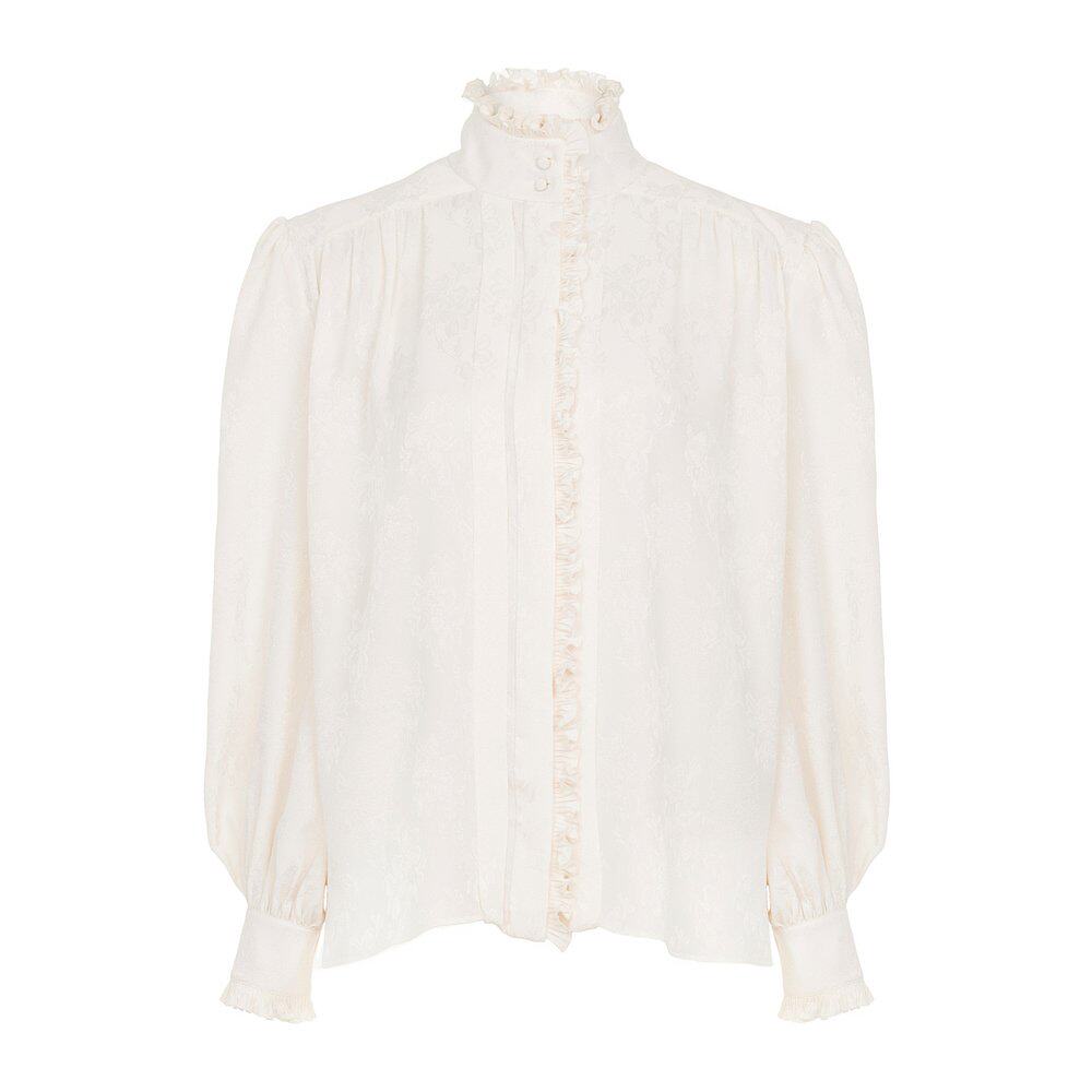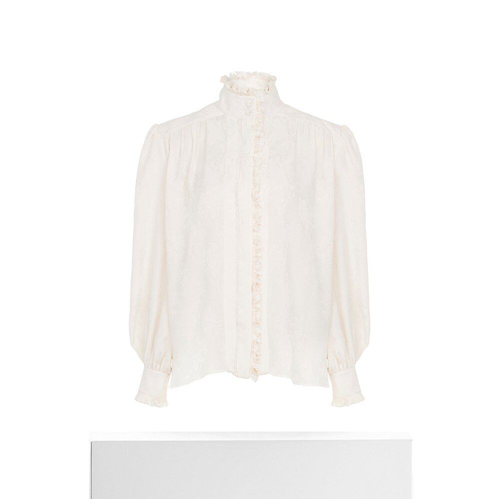 香港直邮Chloe 荷叶边真丝提花衬衫 CH25WHT40323-立领长袖泡泡袖