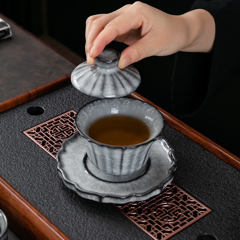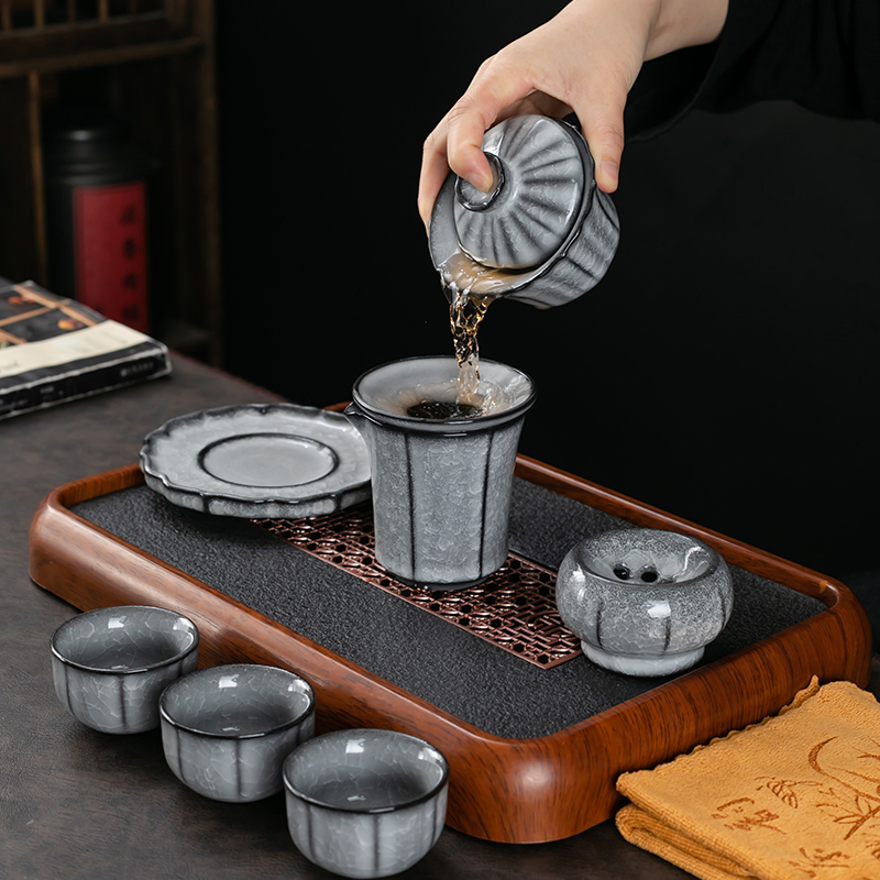 黑冰功夫茶具套装家用冰花开片陶瓷泡茶壶盖碗茶杯整套茶器送礼装