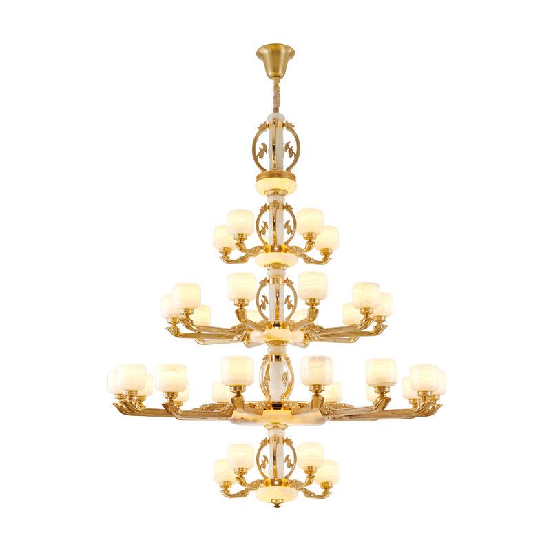 新中式全铜玉石吊灯大气别墅客厅餐厅灯具中国风复式楼大厅云石灯