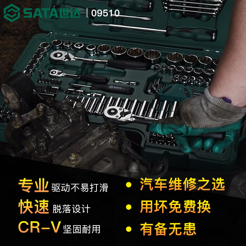 世达150件汽修工具套装修车专用汽车修理工具套筒扳手大全09510