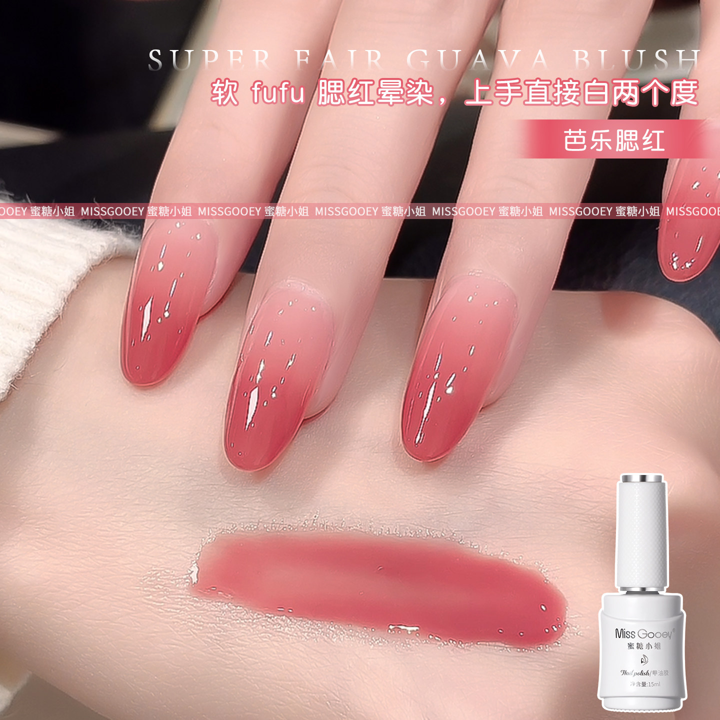 春夏芭乐腮红指甲油胶2026年新款纯欲冰透显白裸色流行百搭美甲
